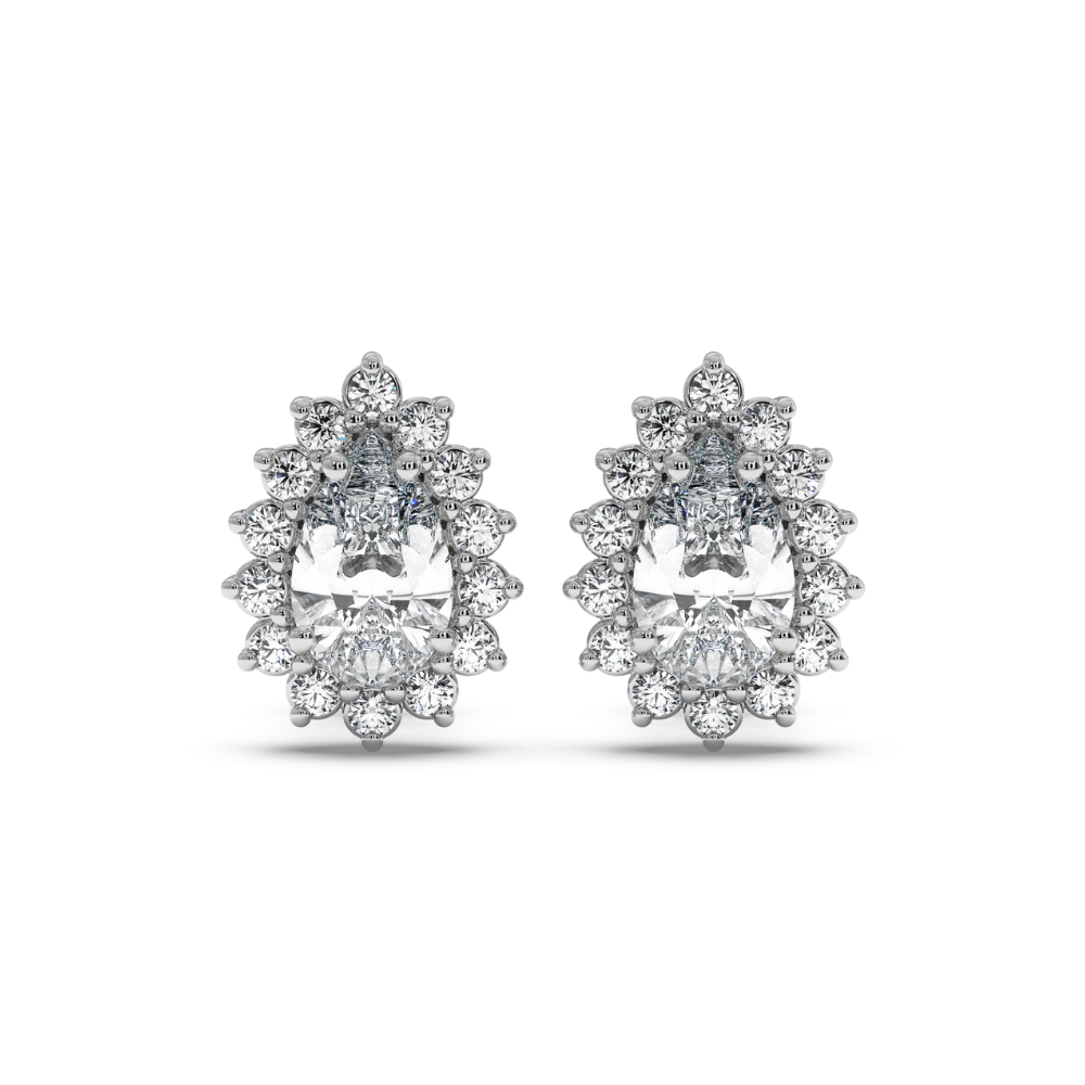 14k white gold earrings, 1.48 ct. pear diamonds and 0.36 ct. round diamonds. The approximate weight of the earrings is 3.38 grams. The earrings can be made in white, yellow or rose gold.