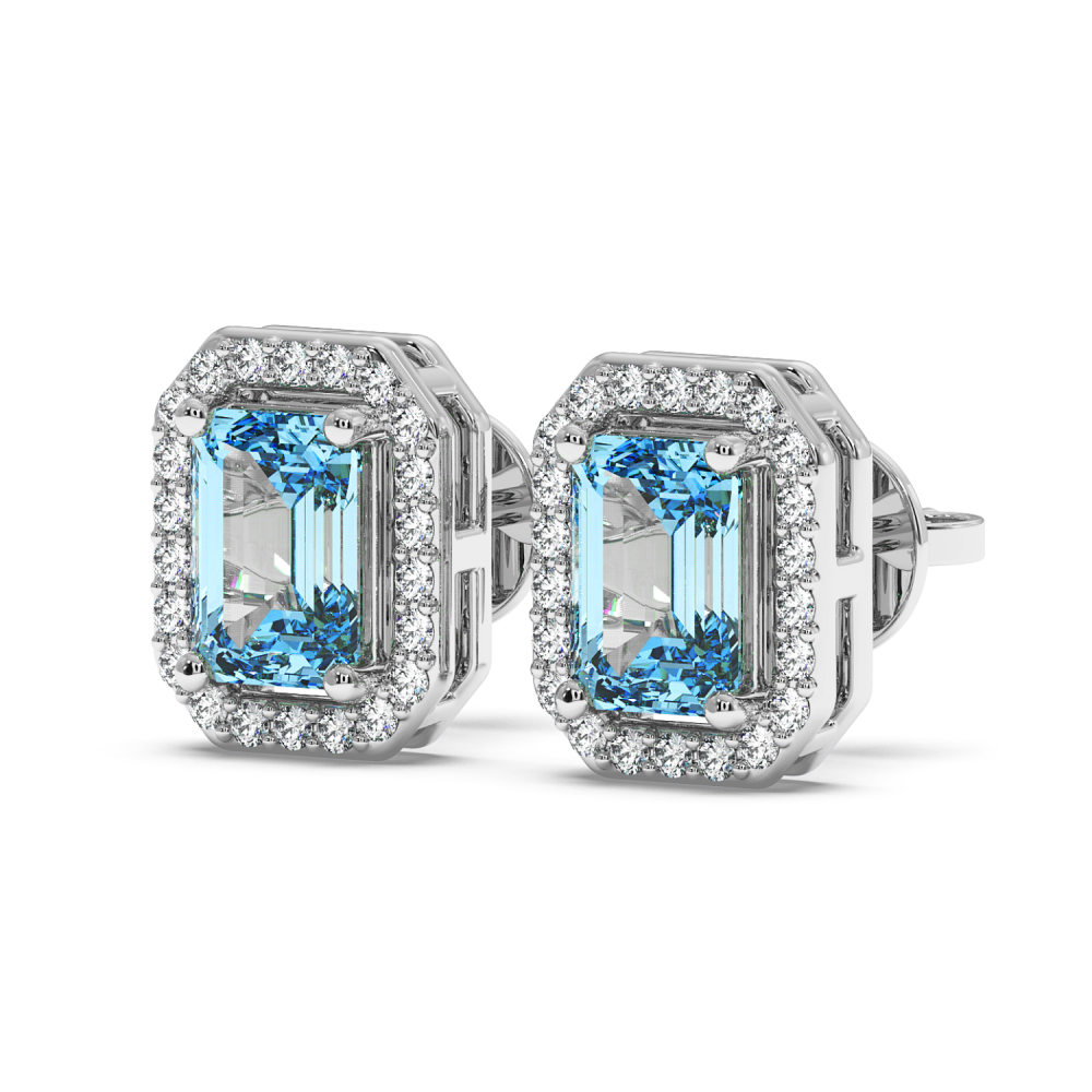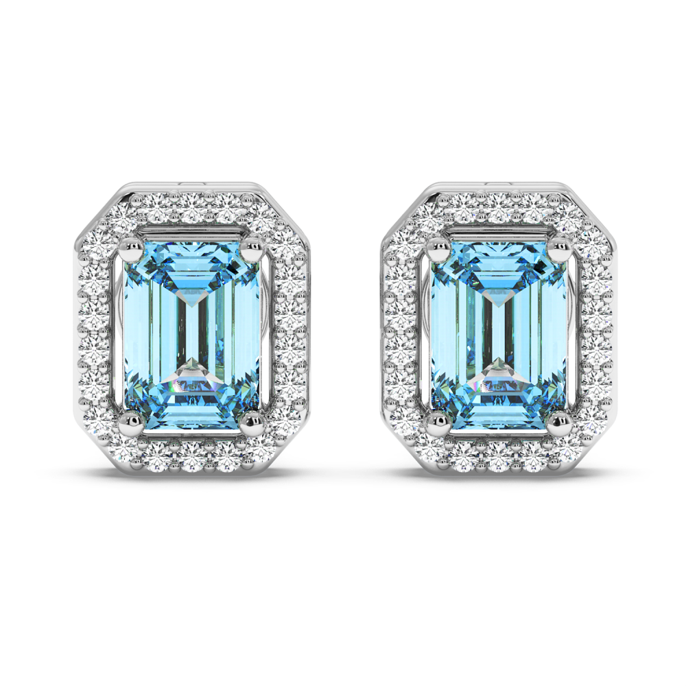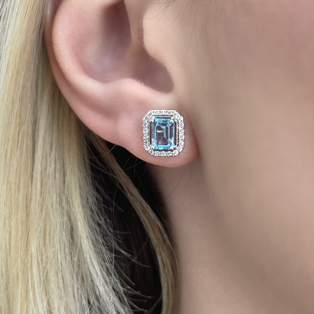 14 K white gold earrings with 0.37 ct. diamonds and 2.88 ct. blue topaz. The earrings weigh 3.71 grams.