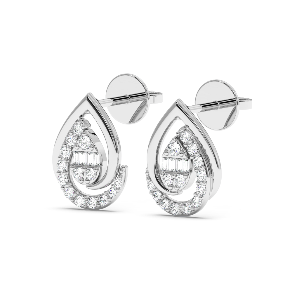 14 K gold earrings with baget diamonds of 0.04ct and round diamonds of 0.19ct. The earrings weigh approximately 2 grams. Go to "SPECIFICATIONS" for more details about this product.