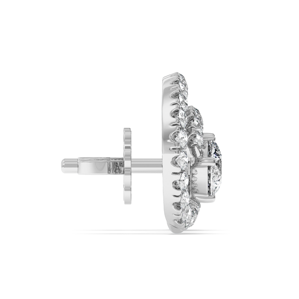 14 K white gold earrings, each with 0.25 ct. center diamond and 0.70 ct. side diamonds. The approximate weight of the earrings is 3.30 grams. The length of the earrings is 1.1 cm.