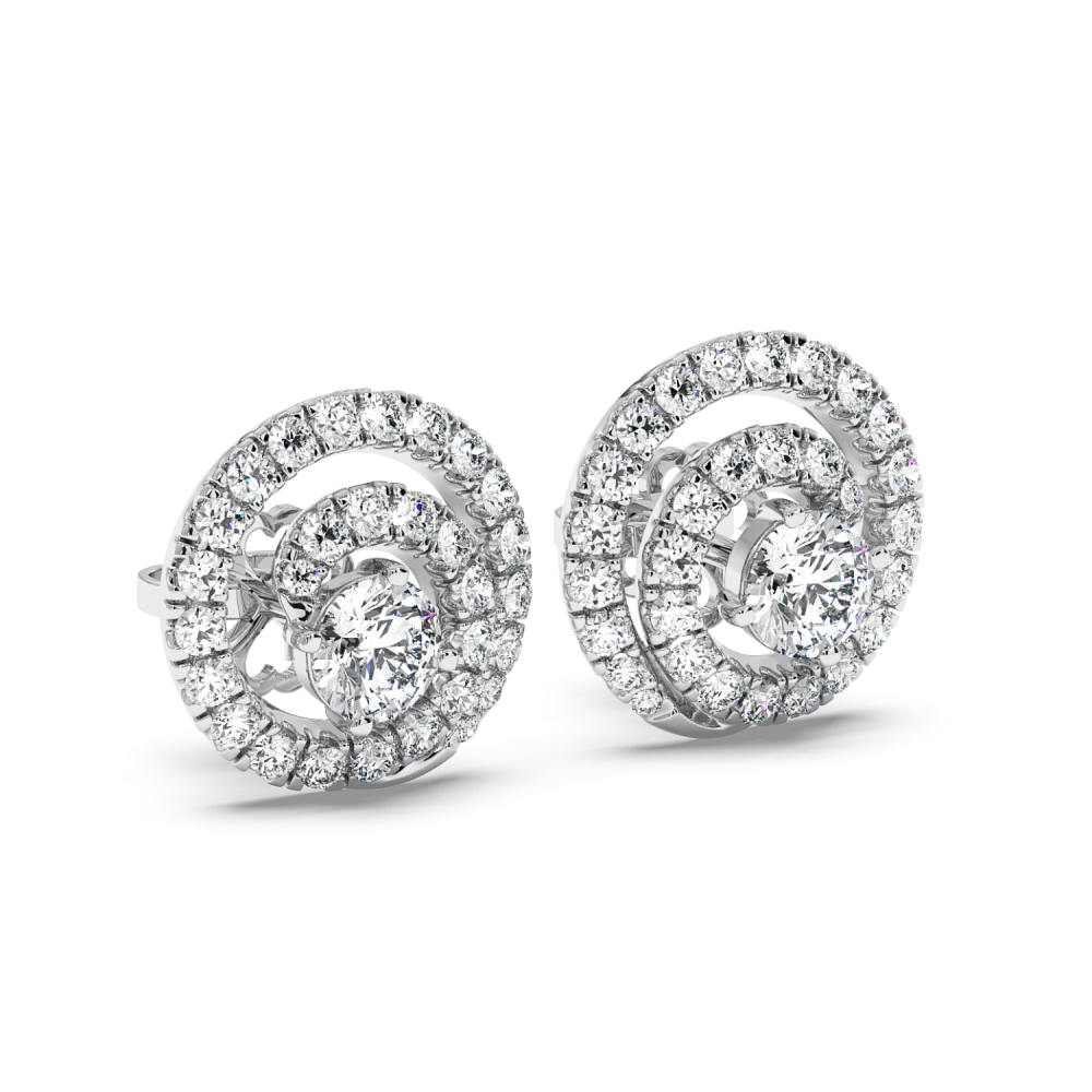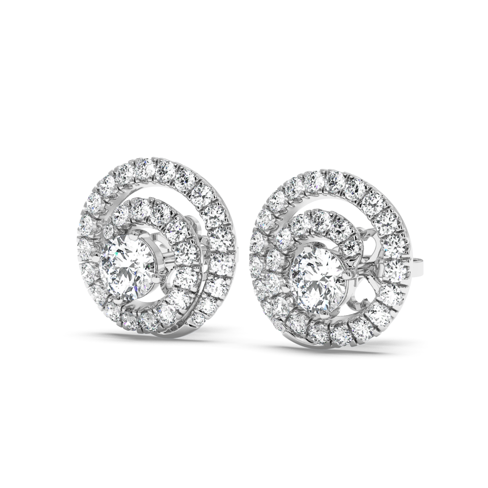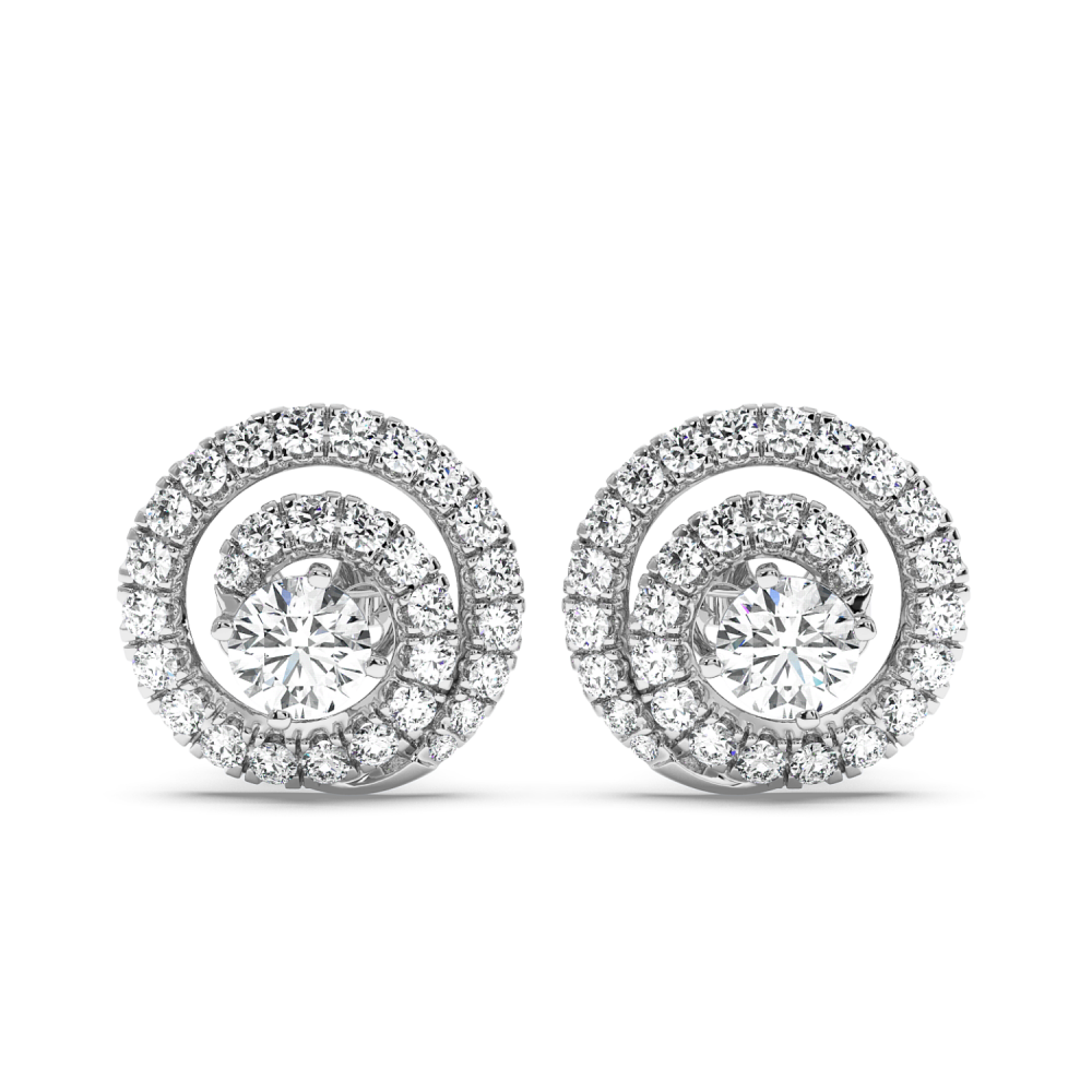 14 K white gold earrings, each with 0.25 ct. center diamond and 0.70 ct. side diamonds. The approximate weight of the earrings is 3.30 grams. The length of the earrings is 1.1 cm. Go to "SPECIFICATIONS" for more details about this product. For an accurate diamond valuation, please...