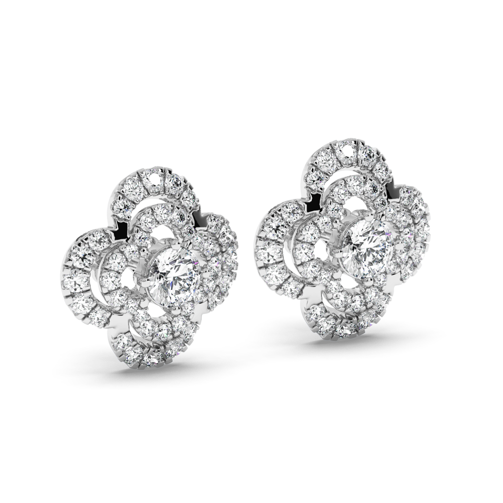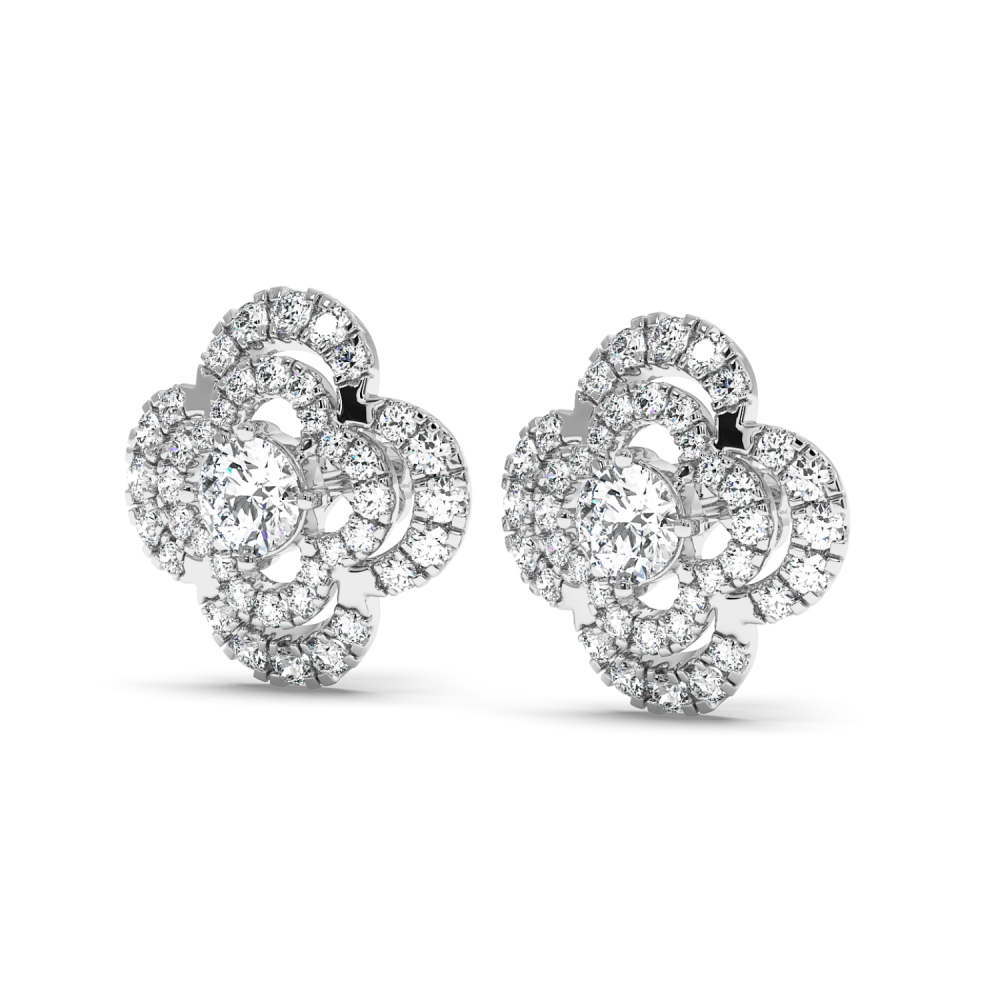 14 K white gold earrings, each with 0.27 ct. center diamond and 0.33 ct. side diamonds. The approximate weight of the earrings is 3.40 grams. The length of the earrings is 1.4 cm.