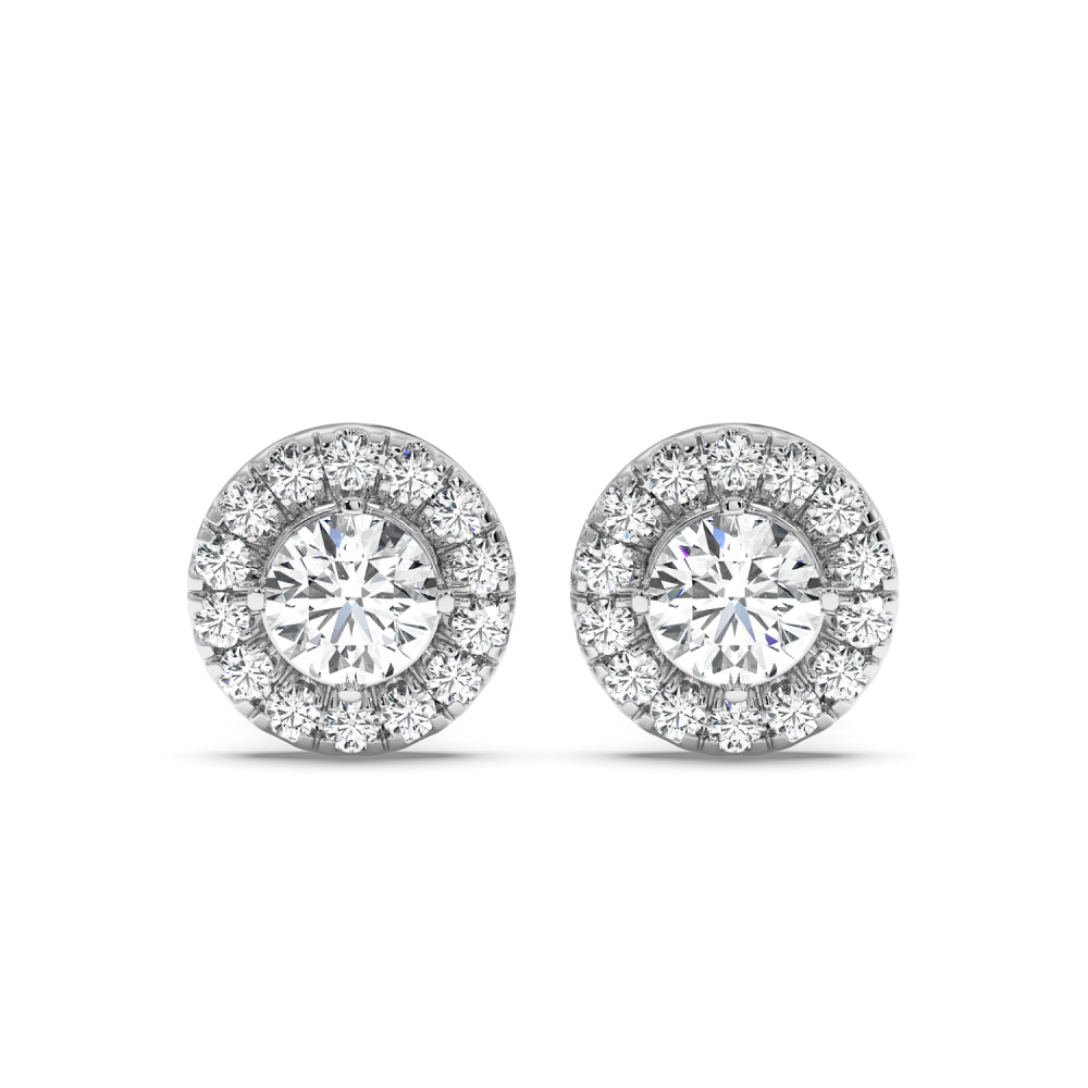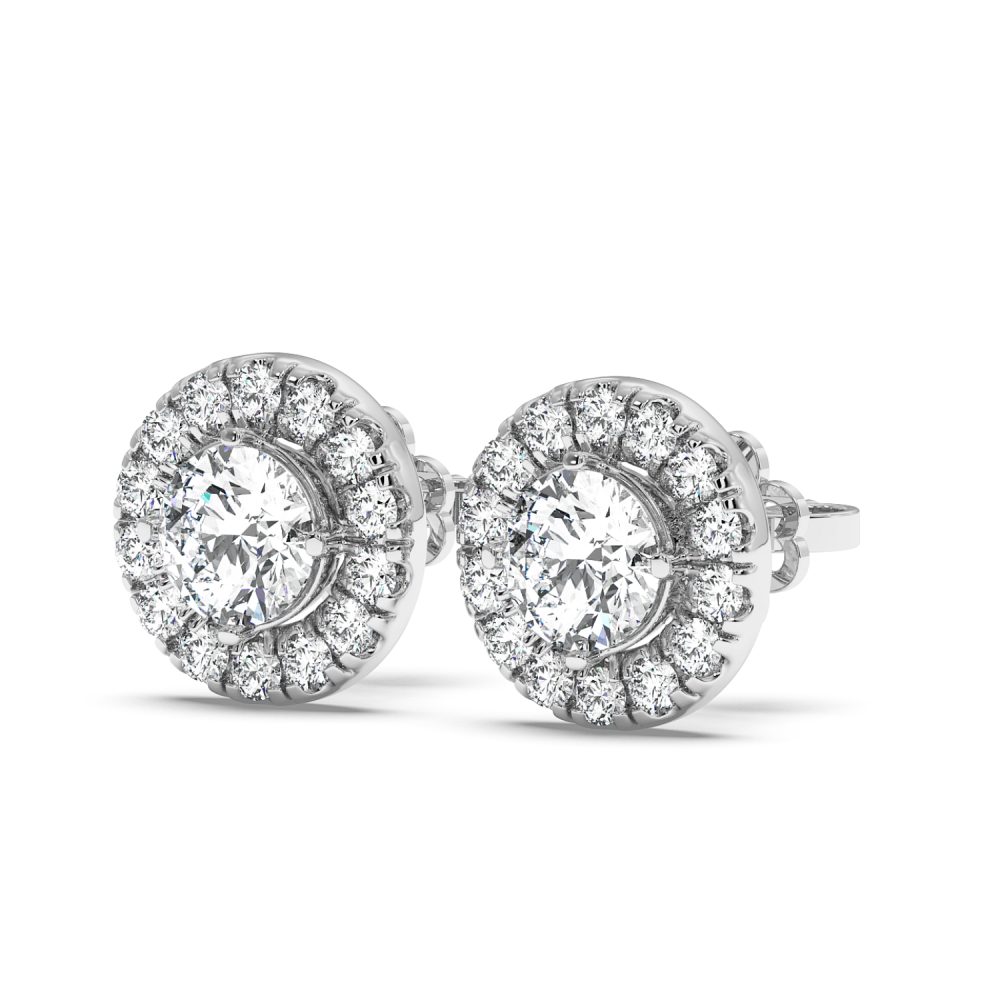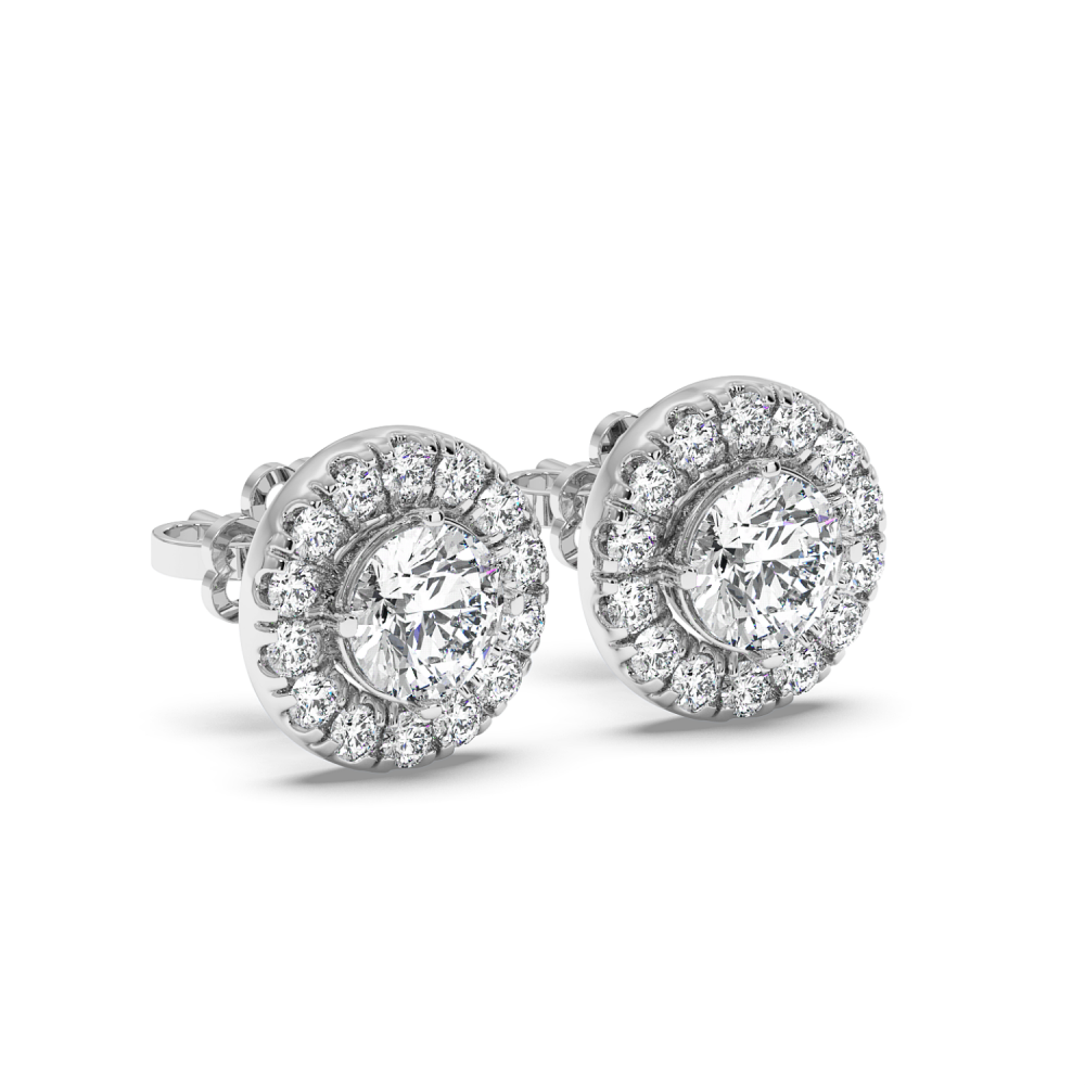 14 K white gold earrings, each with 0.45 ct. center diamond and 0.46 ct. side diamonds. The approximate weight of the earrings is 3.20 grams.