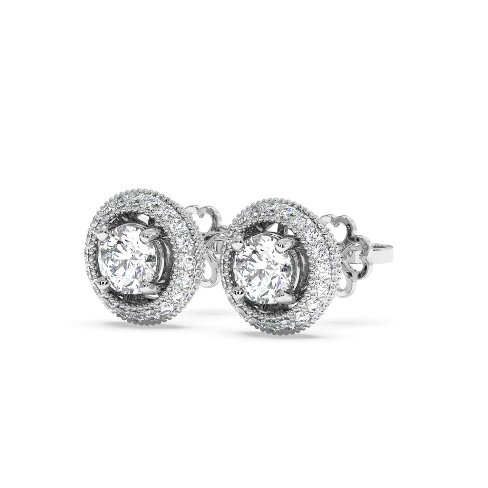 14 K white gold earrings, each with 0.50 ct. center diamond and 0.67 ct. side diamonds. The approximate weight of the earrings is 3.33 grams. Go to "SPECIFICATIONS" for more details about this product. For an accurate diamond valuation, please refer to the chart below: