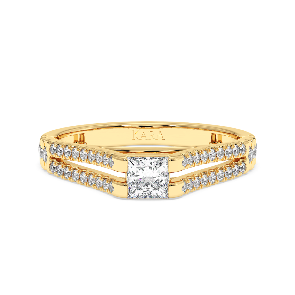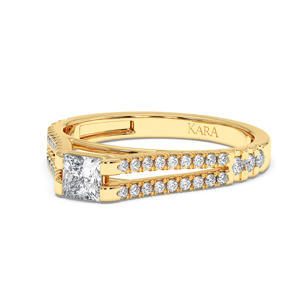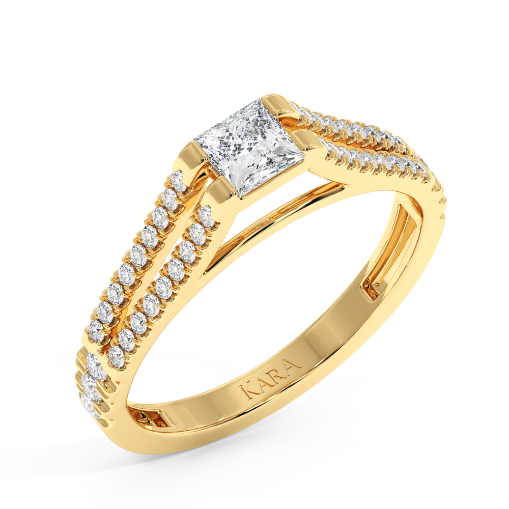 Engagement ring with 0.30 ct Princess diamond and 0.27 ct side diamonds