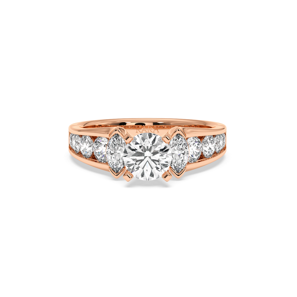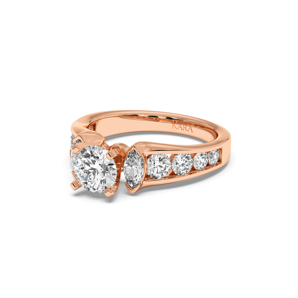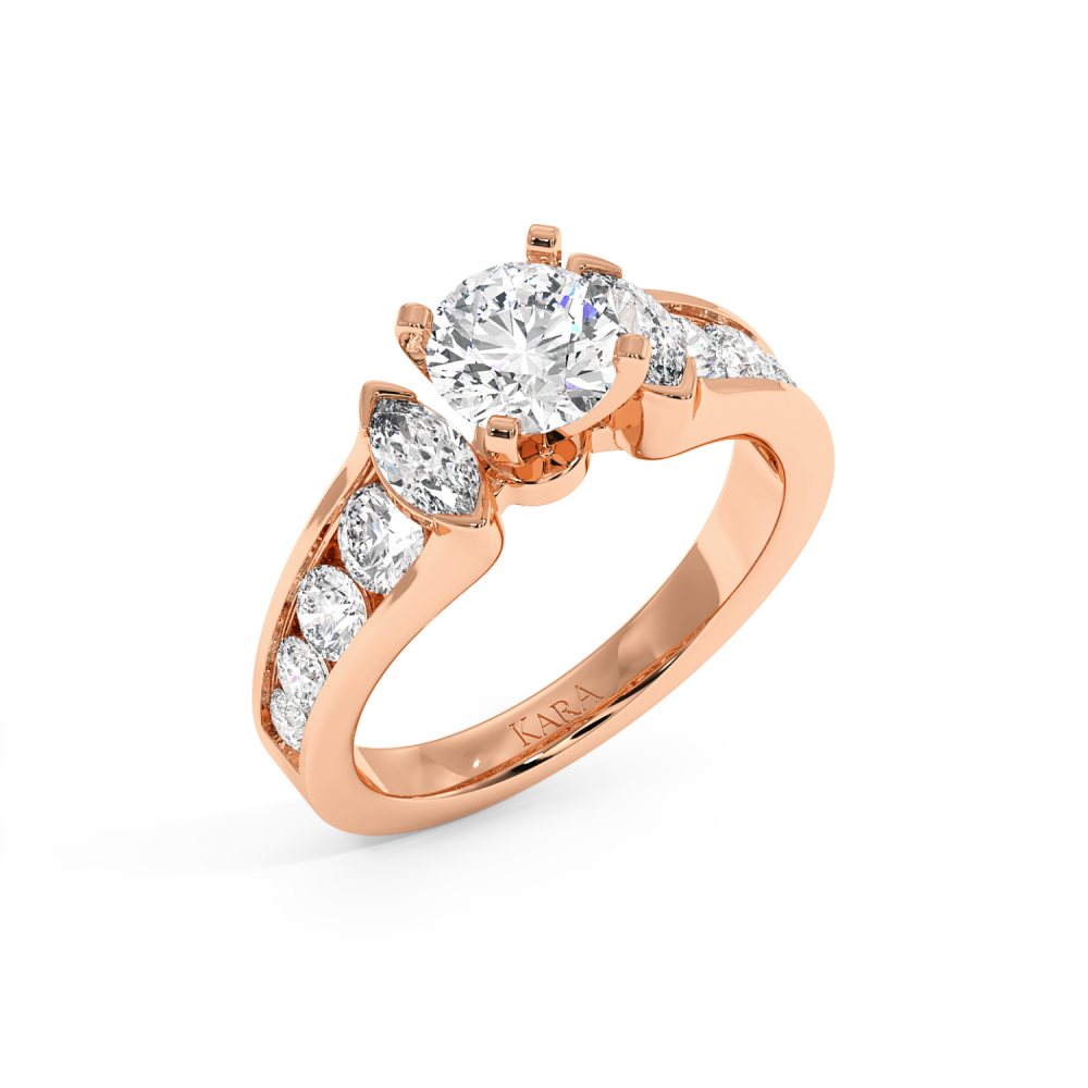 Engagement Ring with 0.92ct Center Round Diamond, 0.33ct Marquise Cut Diamonds and 0.85ct Lateral Round Diamonds