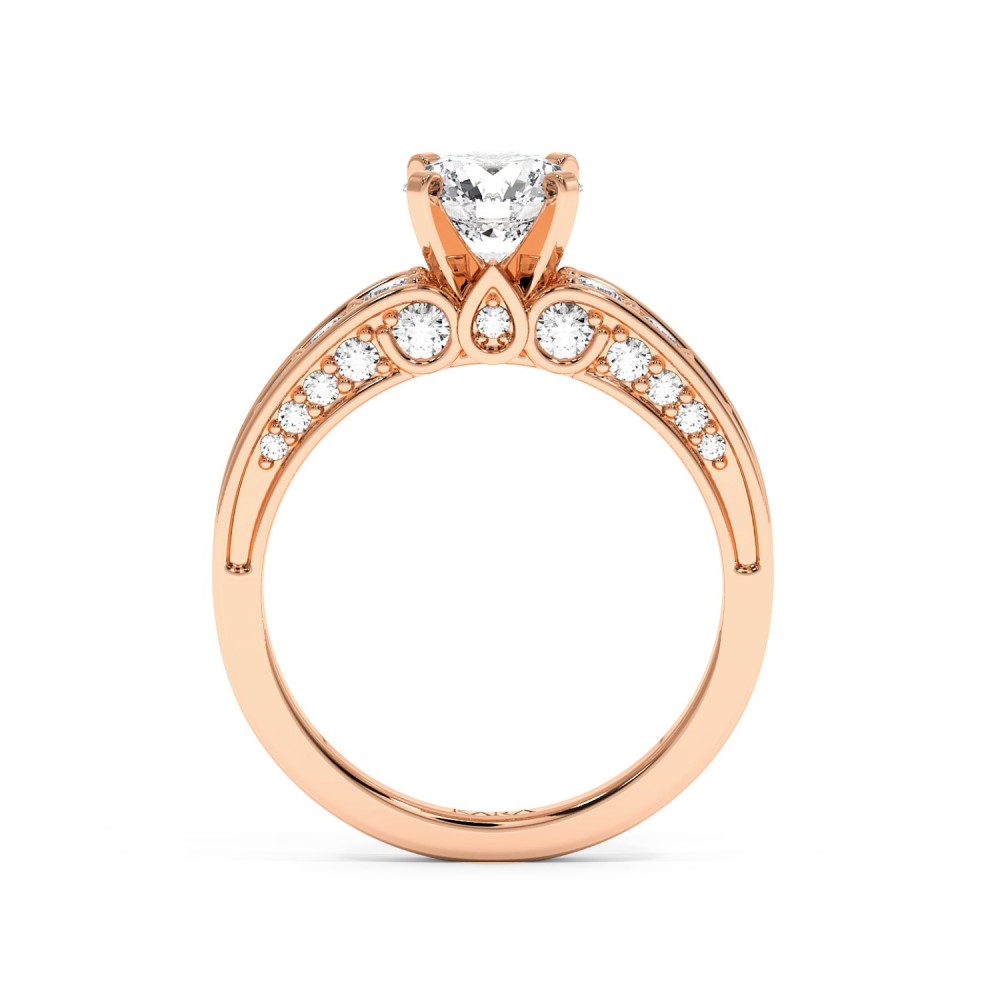 We can modify the design to suit your budget. We can choose the characteristics of the diamonds (cut, color, clarity, carat) to create the perfect diamond engagement ring.