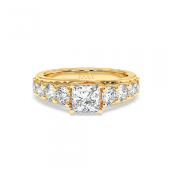 Engagement Ring with 1ct Princess Cut 1ct Center Diamond and 1.23ct Round Side Diamonds