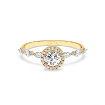Engagement ring with central diamond of 0.30 ct and side Marquise diamonds of 0.21 ct and round diamonds of 0.05 ct
