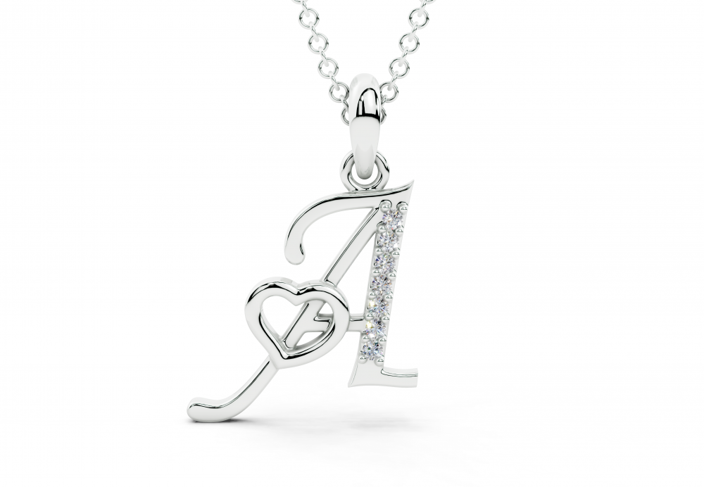 14 K white gold initial A pendant with 0.03ct diamonds. The approximate weight of the pendant is 2.60 grams.