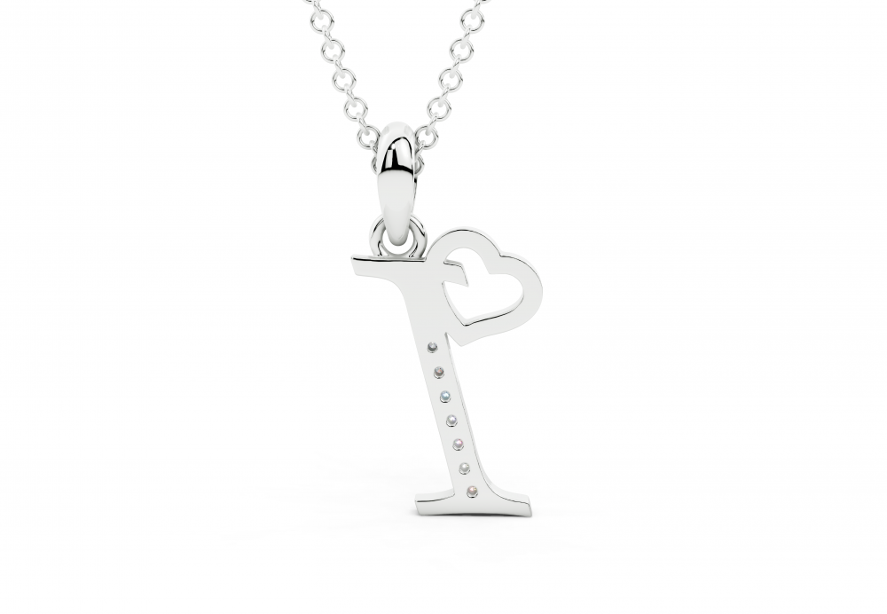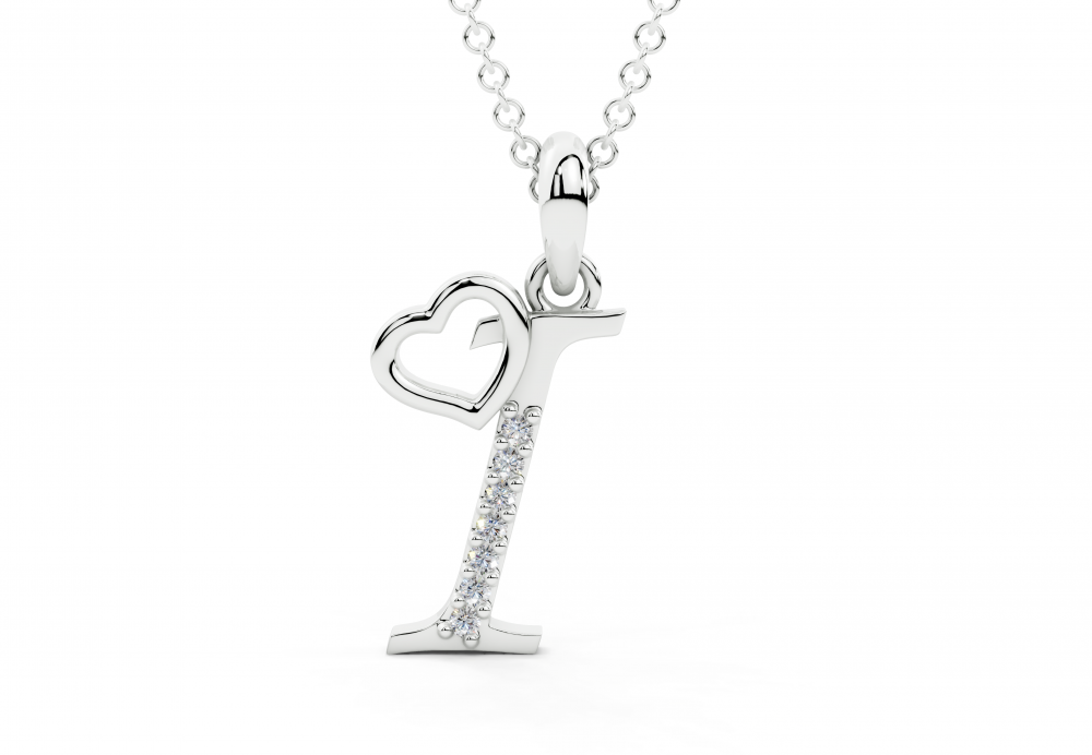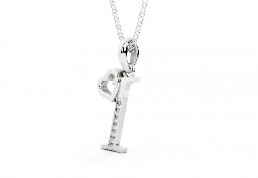 Initial I pendant in 14 K white gold with 0.03ct diamonds. The approximate weight of the pendant is 2.50 grams.