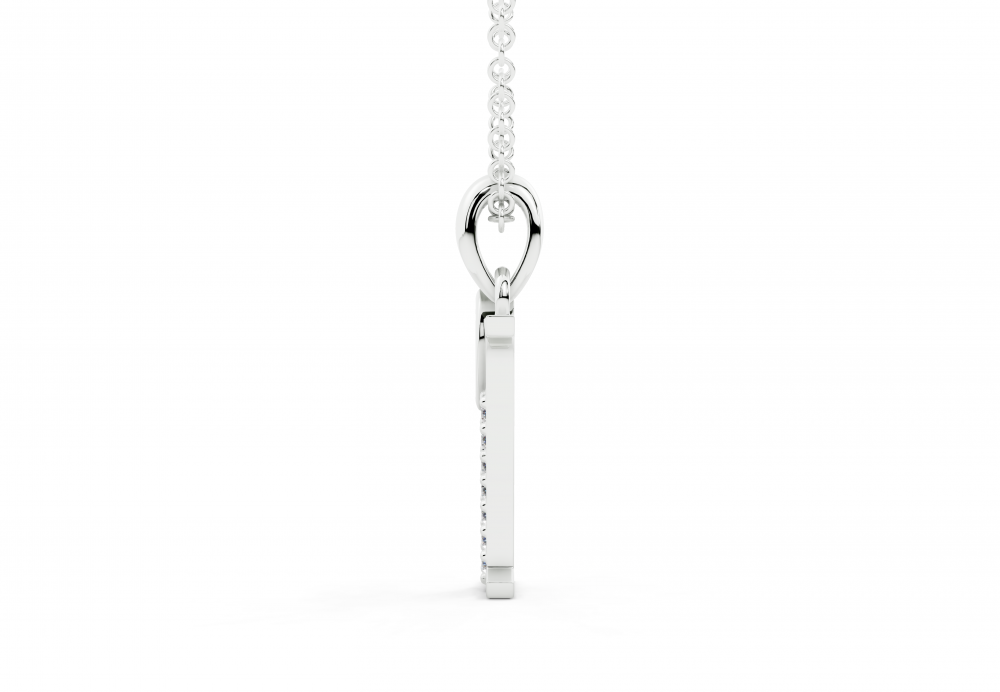 Initial I pendant in 14 K white gold with 0.03ct diamonds. The approximate weight of the pendant is 2.50 grams. Go to "SPECIFICATIONS" for more details about this product. We can customize any initial you wish.