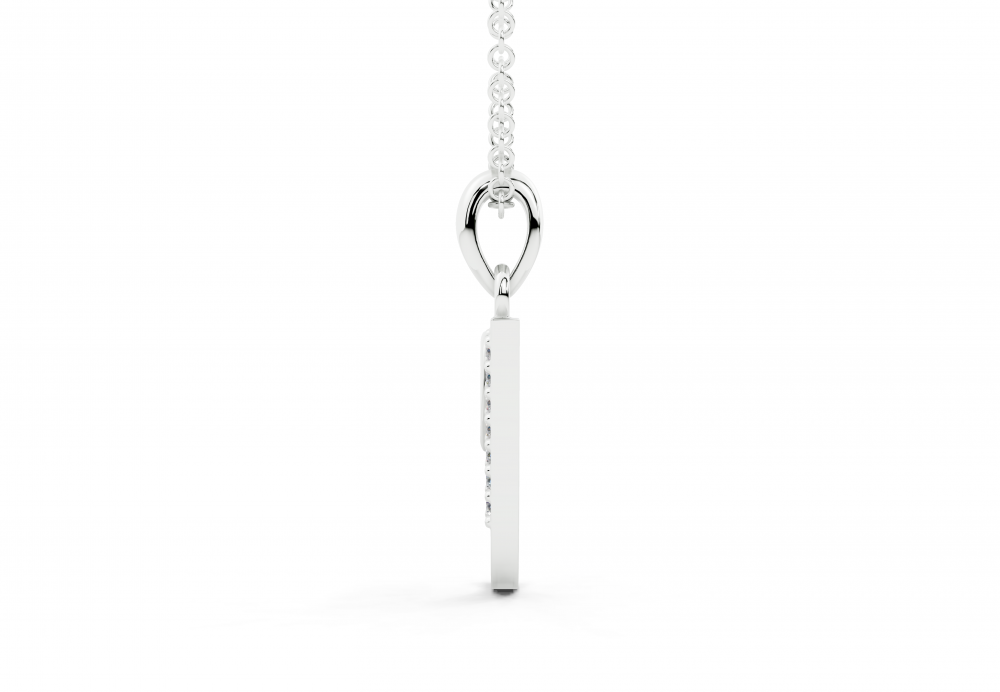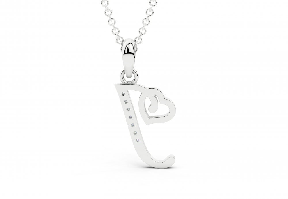 Initial J pendant in 14 K white gold with 0.03ct diamonds. The approximate weight of the pendant is 2.60 grams. Go to "SPECIFICATIONS" for more details about this product. We can customize any initial you wish.