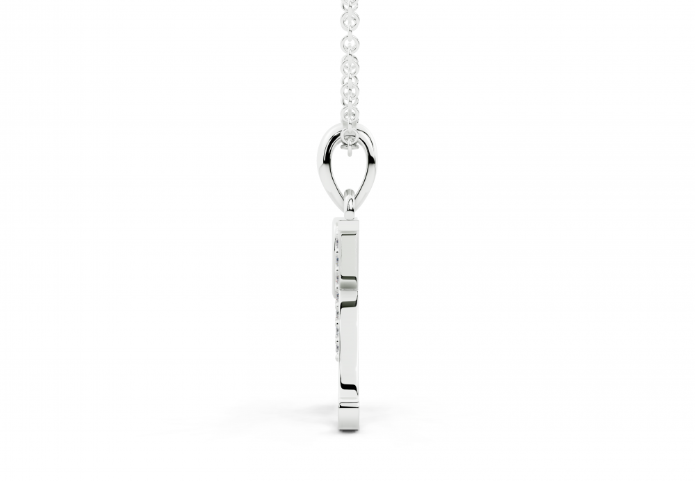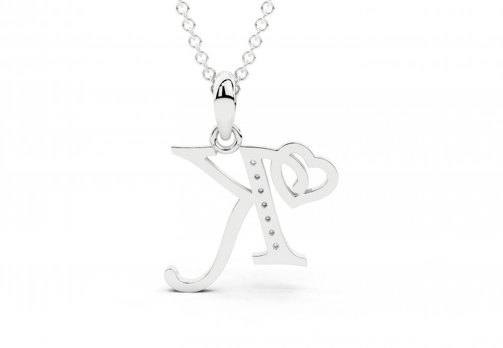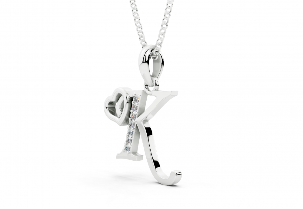 Initial K pendant in 14 K white gold with 0.03ct diamonds. The approximate weight of the pendant is 2.70 grams. Go to "SPECIFICATIONS" for more details about this product. We can customize any initial you wish.