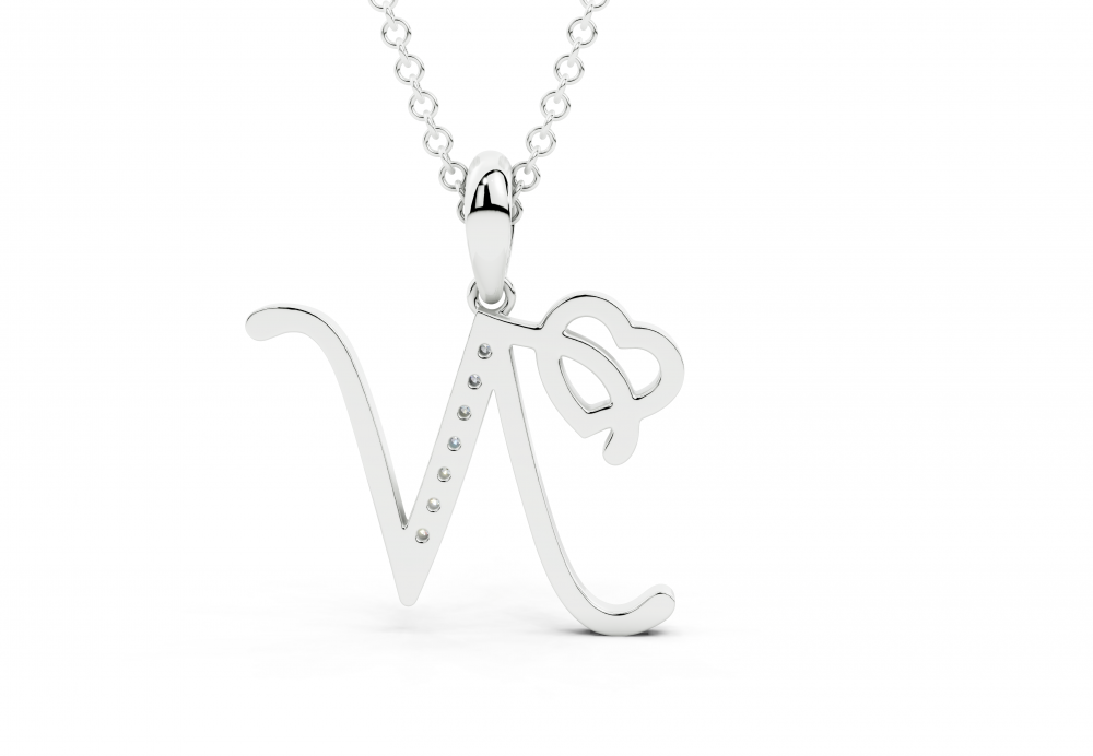 Initial N pendant in 14 K white gold with 0.03ct diamonds. The approximate weight of the pendant is 2.70 grams. Go to "SPECIFICATIONS" for more details about this product. We can customize any initial you wish.