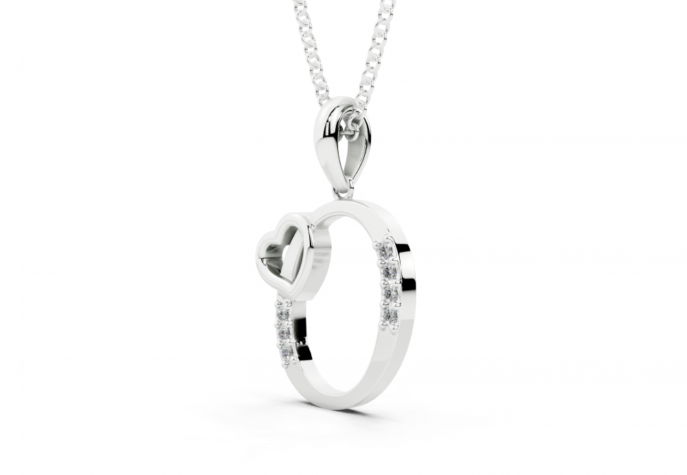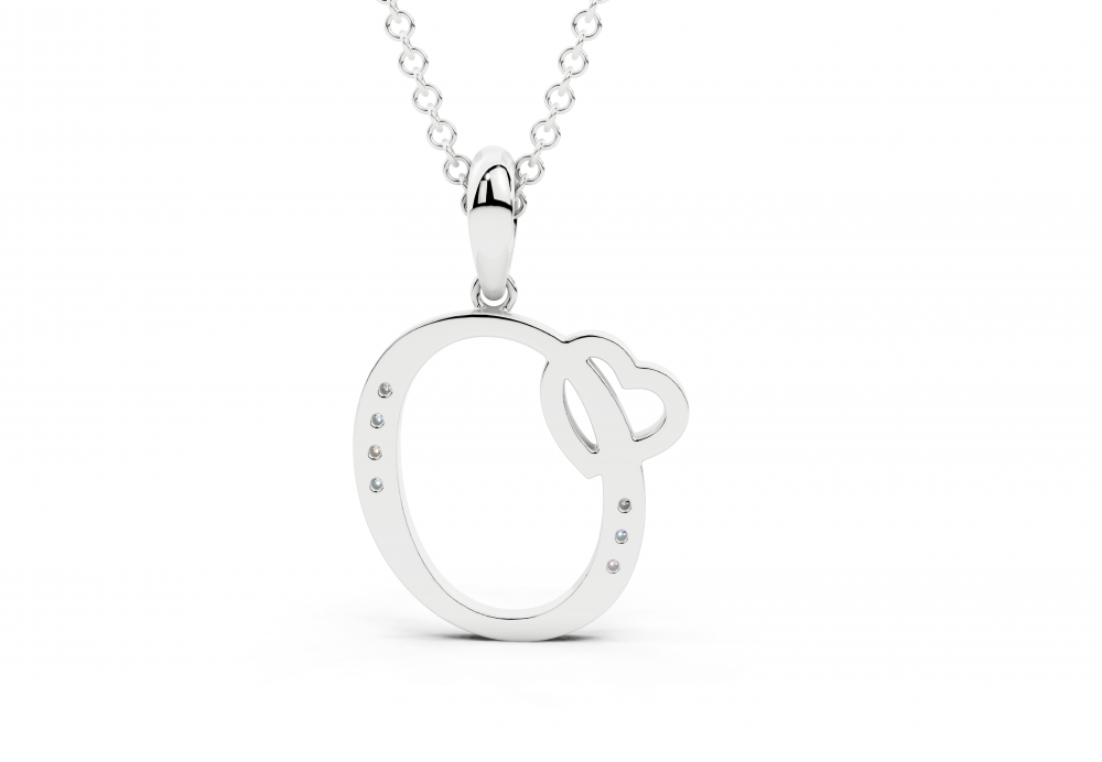 Initial O pendant in 14 K white gold with 0.03ct diamonds. The approximate weight of the pendant is 2.70 grams. Go to "SPECIFICATIONS" for more details about this product. We can customize any initial you wish.