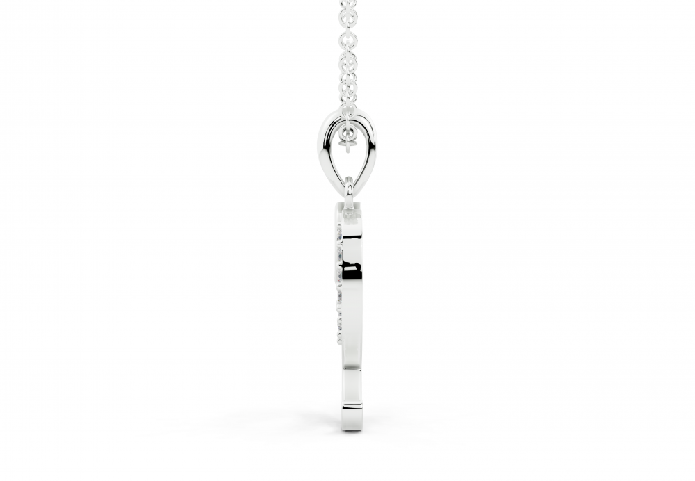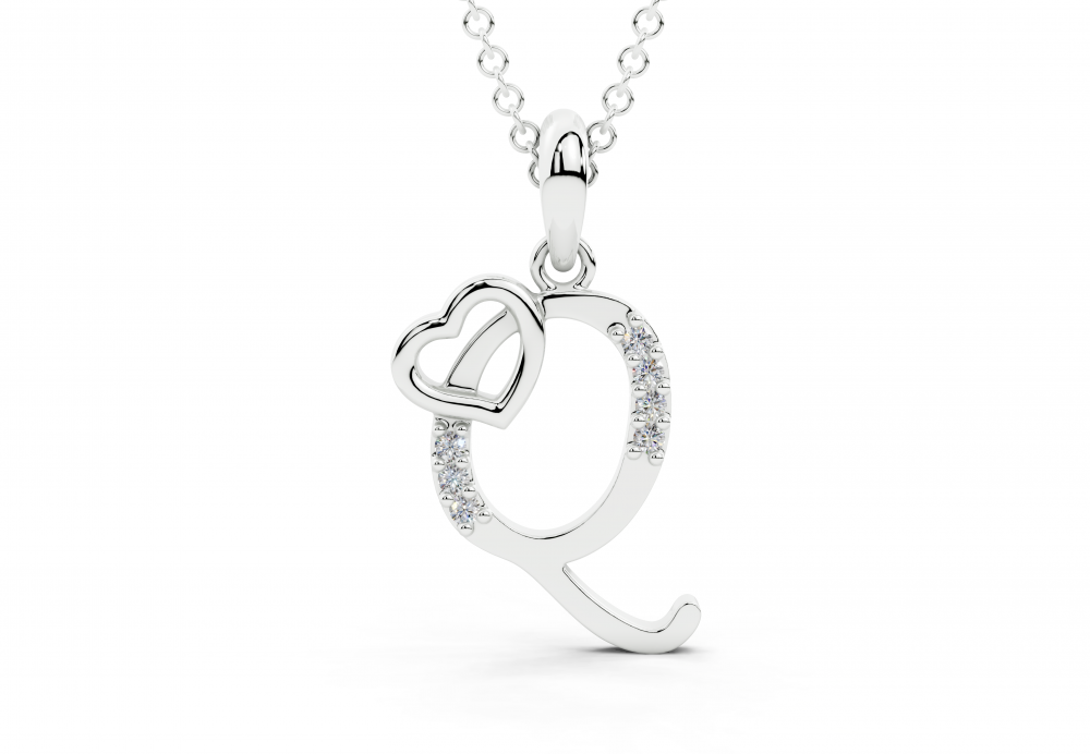 Initial Q pendant in 14 K white gold with 0.03ct diamonds. The approximate weight of the pendant is 2.70 grams. Go to "SPECIFICATIONS" for more details about this product. We can customize any initial you wish.