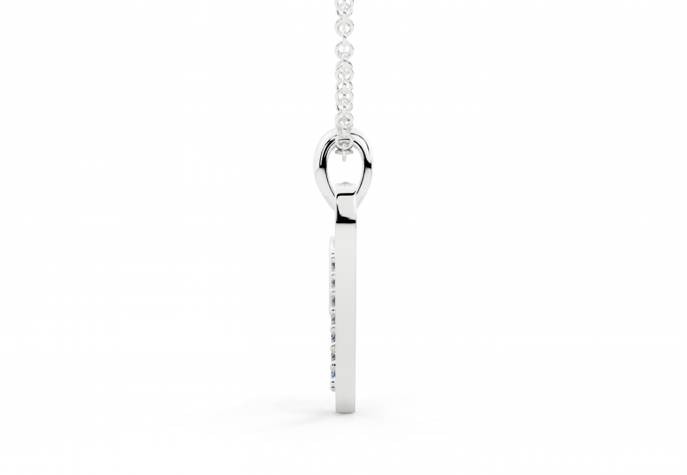 Initial V pendant in 14 K white gold with 0.03ct diamonds. The approximate weight of the pendant is 2.70 grams. Go to "SPECIFICATIONS" for more details about this product. We can customize any initial you wish.