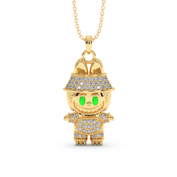 Labubu pendant in 14 K gold with 0.33ct diamonds. The pendant weighs approximately 9.50 grams. The pendant can also be made to order in 18K gold, yellow or rose white. We can modify the design according to your budget. We can choose the characteristics of the diamonds (cut, color, clarity,...