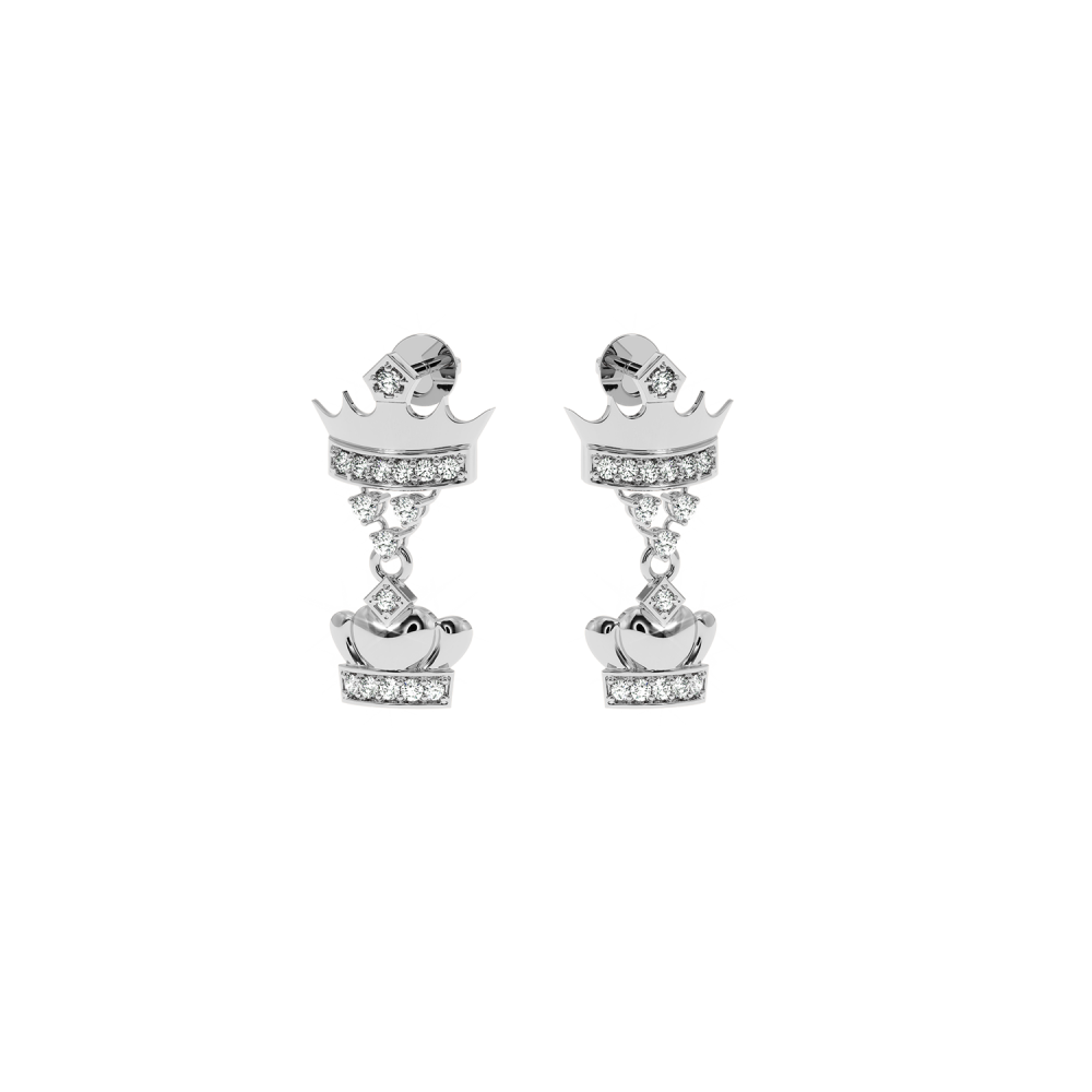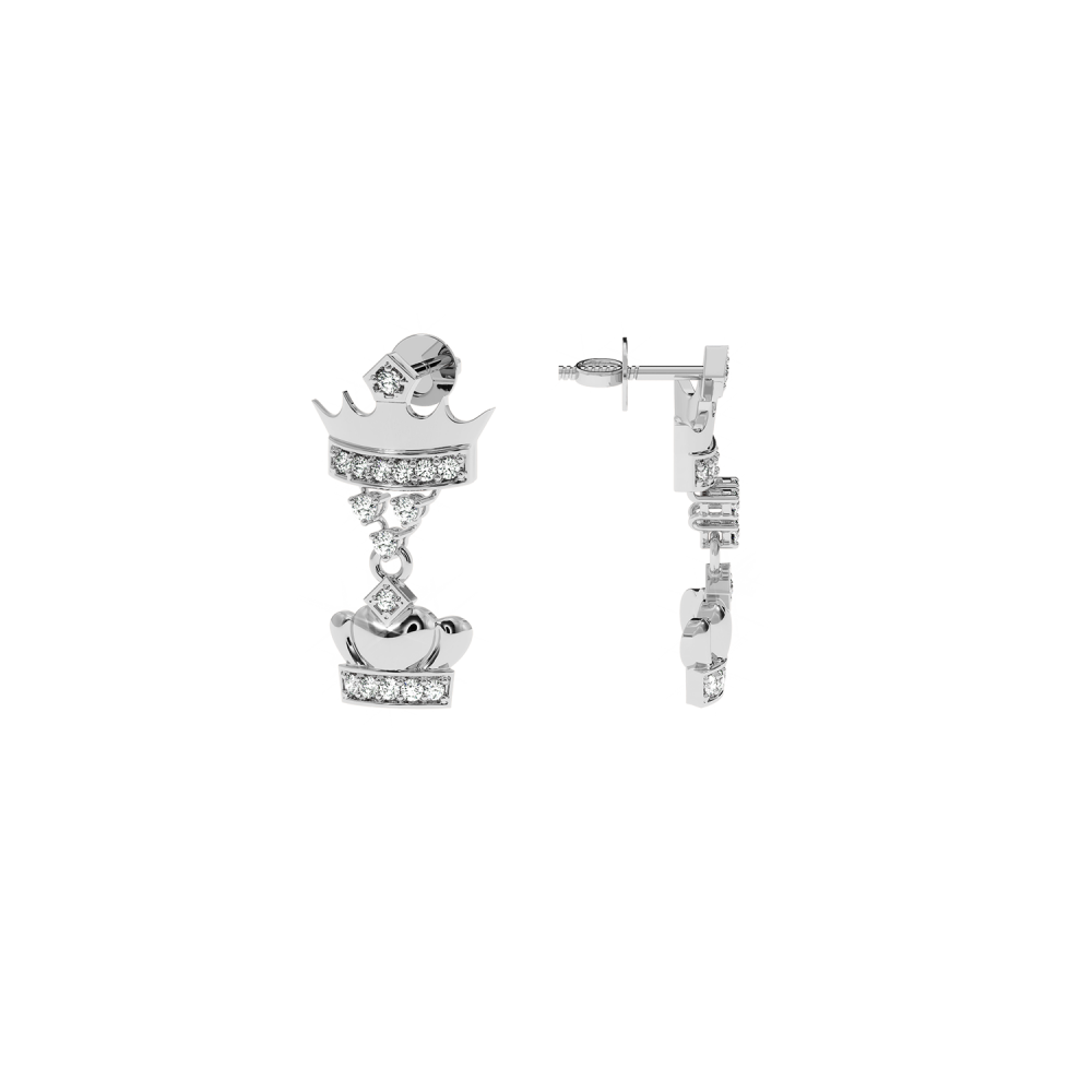 14 K white gold earrings with diamonds of approximately 0.18 ct. The weight of the earrings is approximately 1.5 grams. The length of the earrings is approximately 2 cm. Go to "SPECIFICATIONS" for more details about this product.