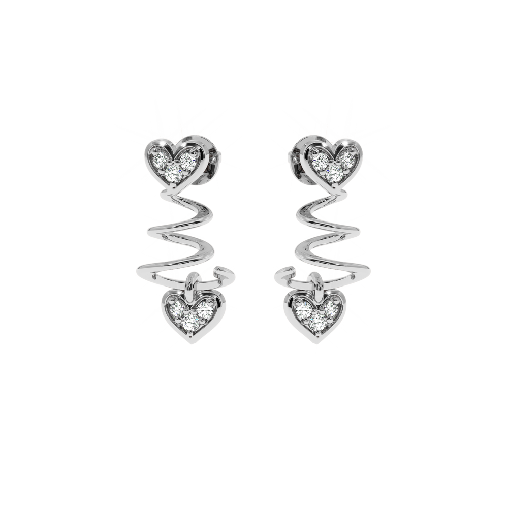 14 K white gold earrings with diamonds of approximately 0.09 ct. The weight of the earrings is approximately 1 gram. The length of the earrings is approximately 1.6 cm. Go to "SPECIFICATIONS" for more details about this product.