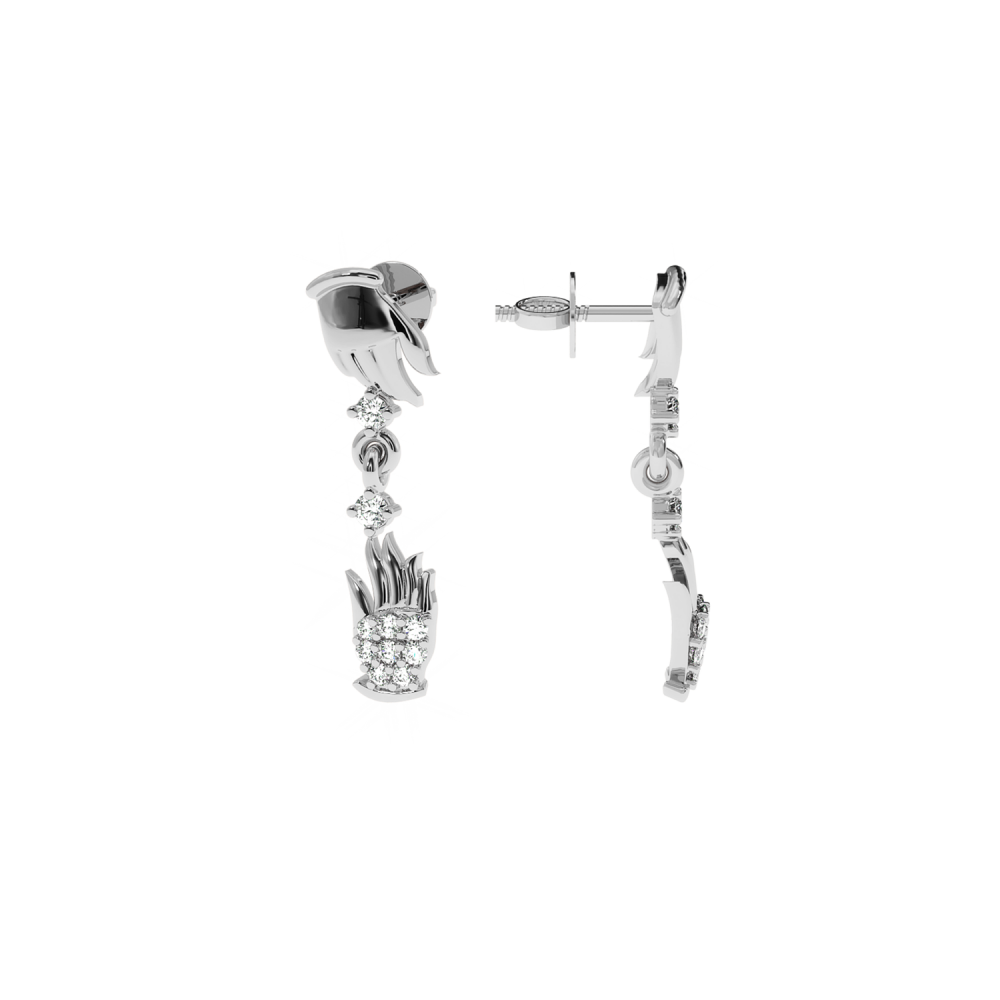 14 K white gold earrings with diamonds of approximately 0.12 ct. The weight of the earrings is approximately 1 gram. The length of the earrings is approximately 1.8 cm. Go to "SPECIFICATIONS" for more details about this product.