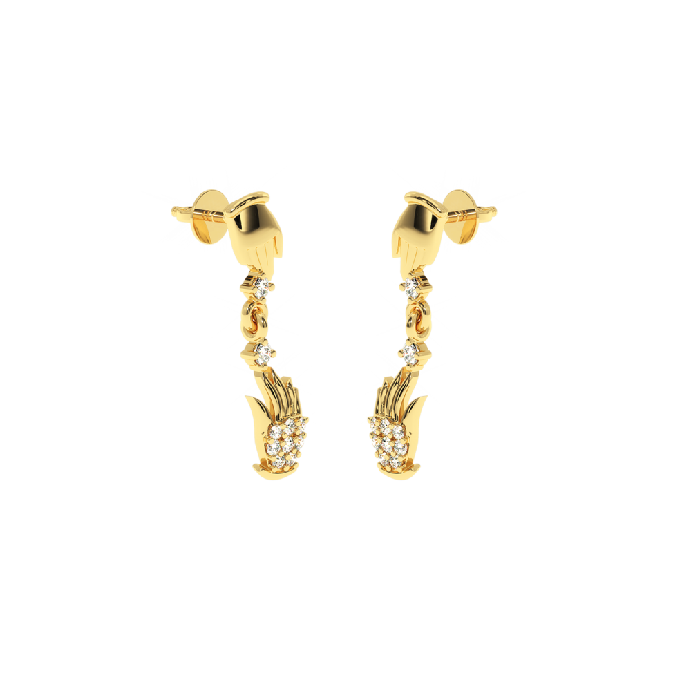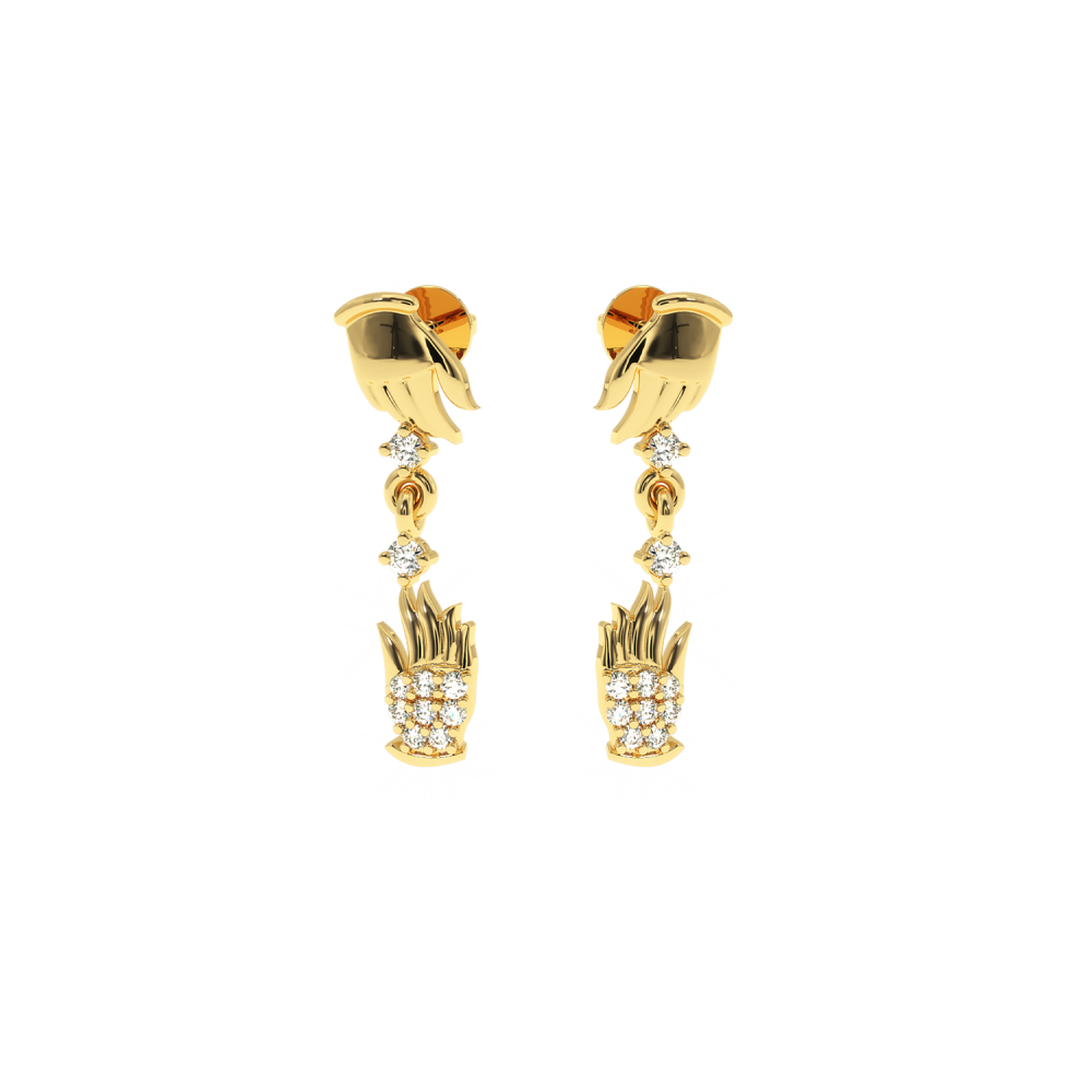 14 K white gold earrings with diamonds of approximately 0.12 ct. The weight of the earrings is approximately 1 gram. The length of the earrings is approximately 1.8 cm. Go to "SPECIFICATIONS" for more details about this product.