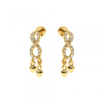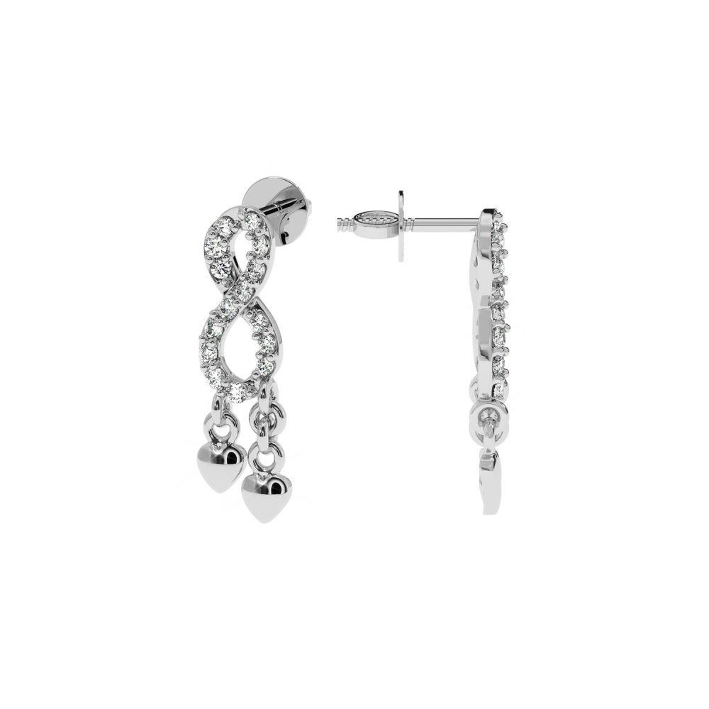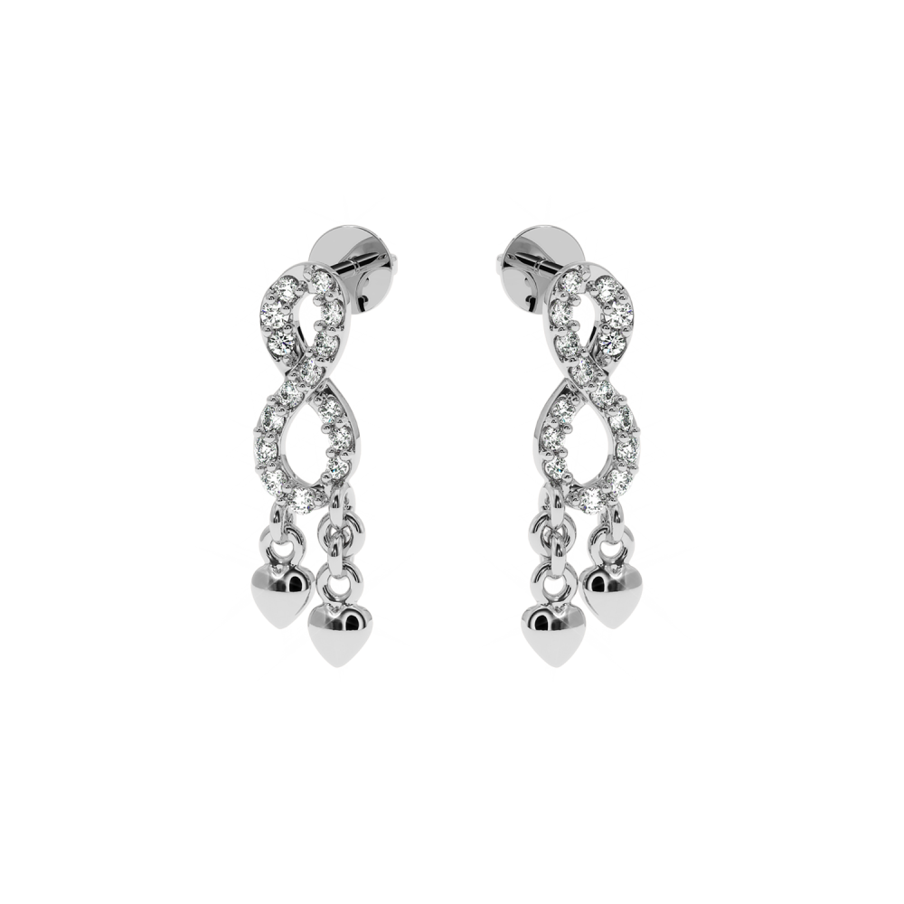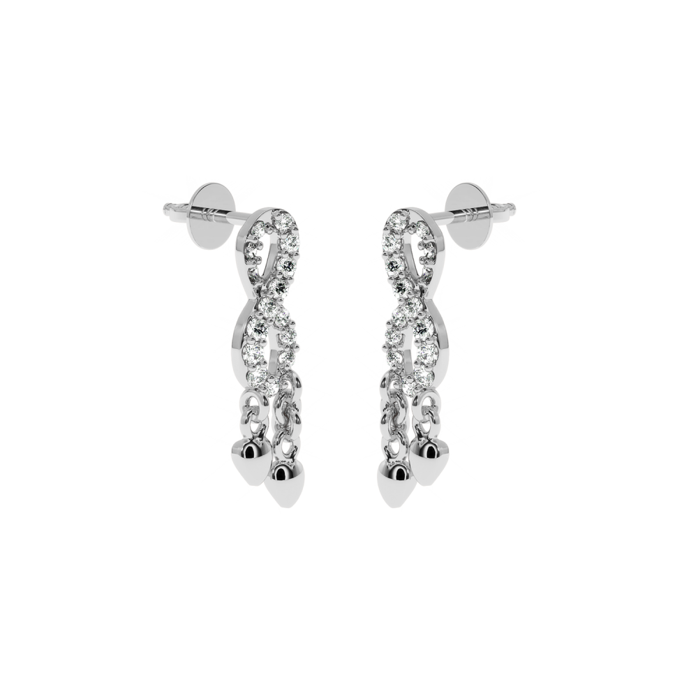 14 K white gold earrings with diamonds of approximately 0.15 ct. The weight of the earrings is approximately 1 gram. The length of the earrings is approximately 1.6 cm. Go to "SPECIFICATIONS" for more details about this product.