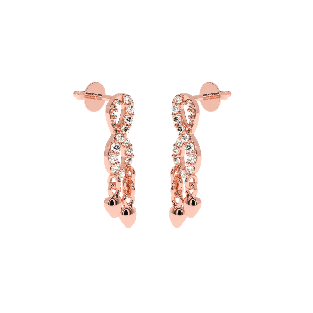 14 K white gold earrings with diamonds of approximately 0.15 ct. The weight of the earrings is approximately 1 gram. The length of the earrings is approximately 1.6 cm. Go to "SPECIFICATIONS" for more details about this product.