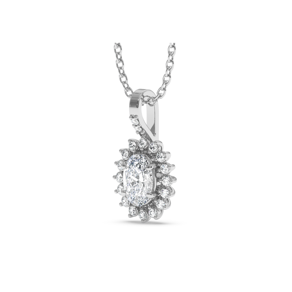 Pendant in 14 K white gold, with central diamond of 0.36 ct and side diamonds of 0.08 ct. The weight of the necklace is approx 3.5 grams. It can be made in white, yellow or rose gold.