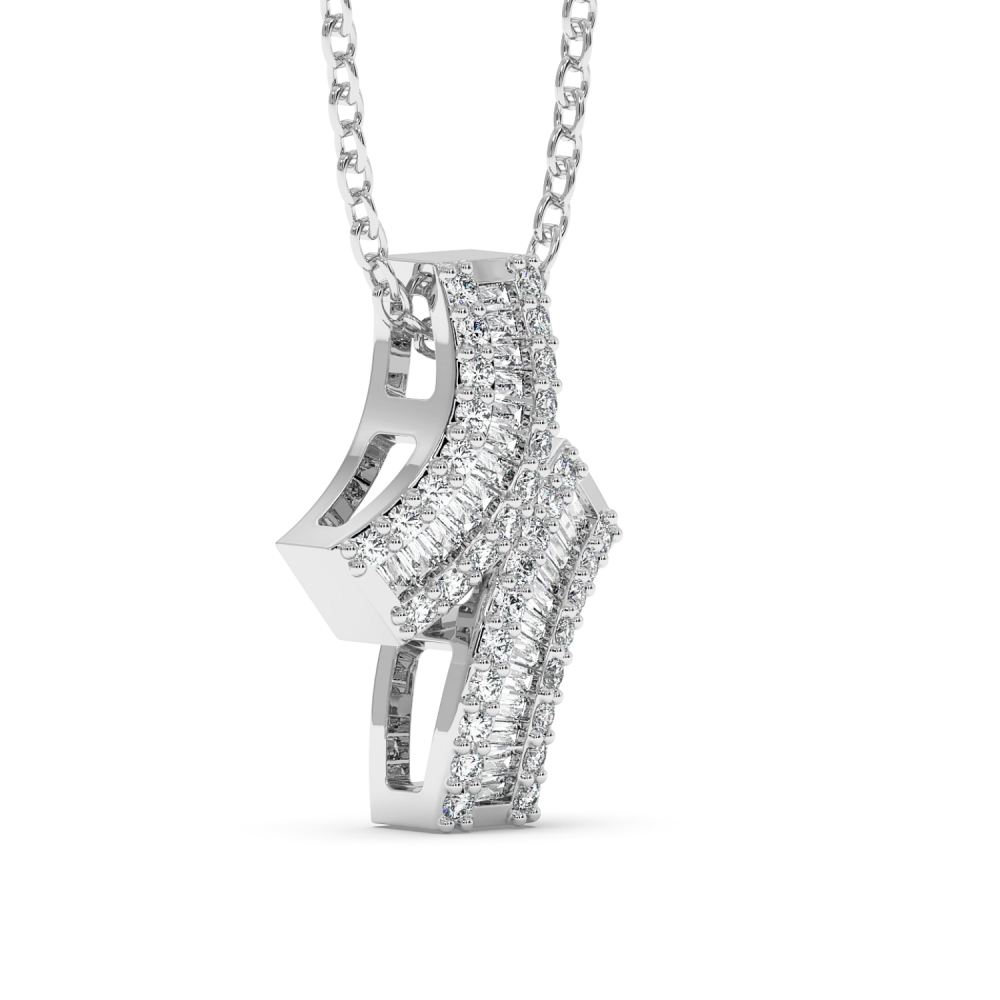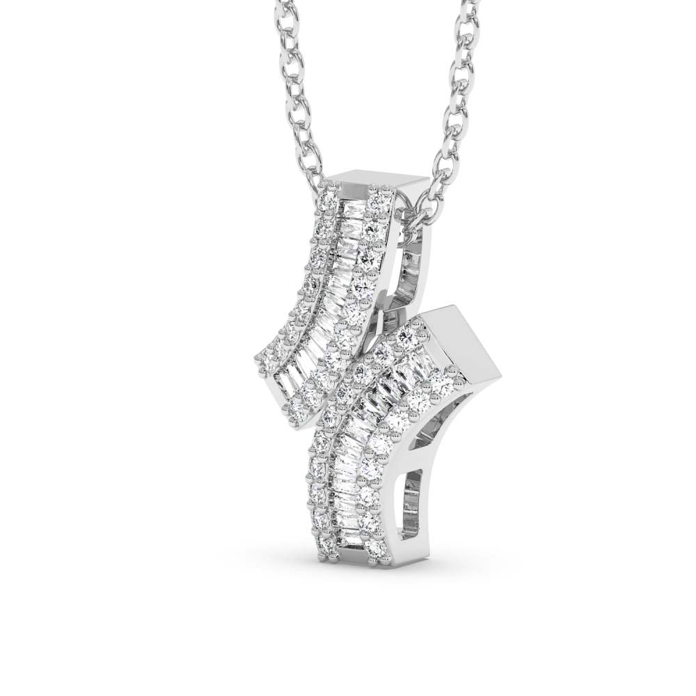 14K white gold necklace with Baget Diamonds of 0.12 ct and Round Diamonds of 0.10 ct. Total weight is apx 2.5 gr. Go to "SPECIFICATIONS" for more details about this product.