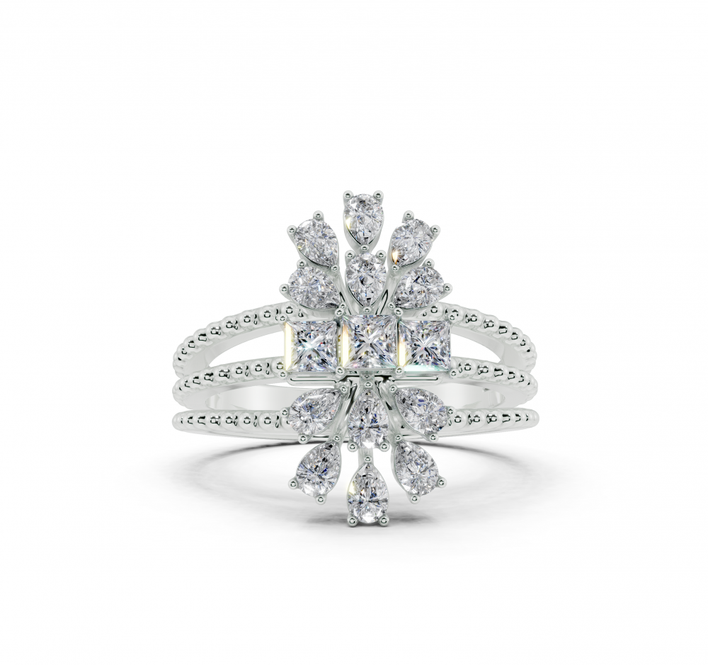 14K white gold ring with 0.36ct Princess Cut diamonds and 0.62ct round diamonds. Ring weight is approximately 5.50 grams.