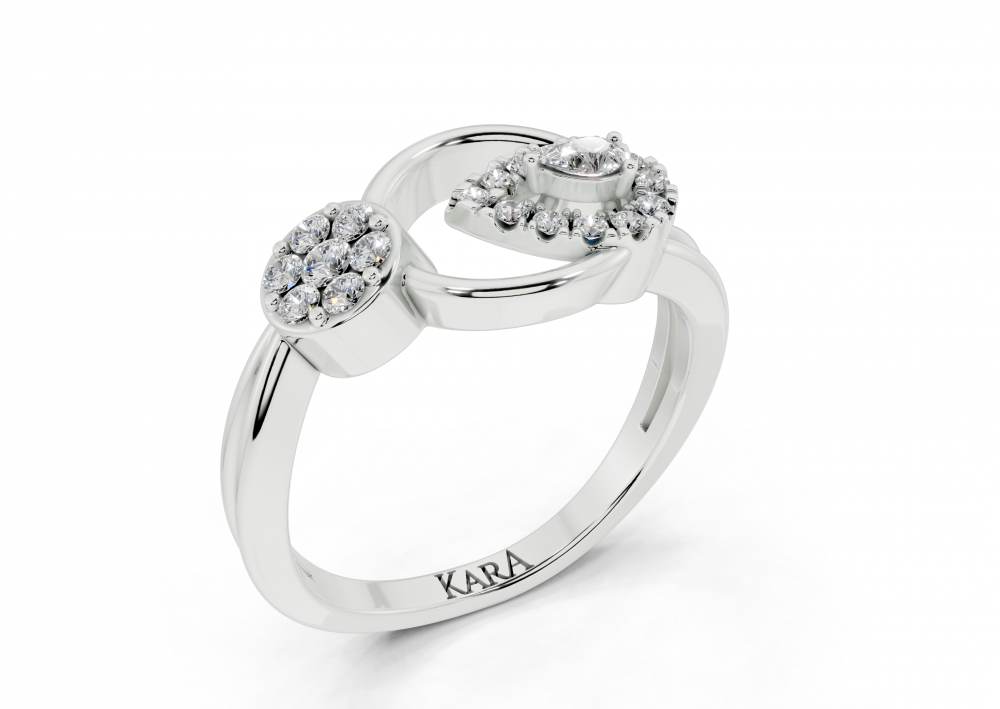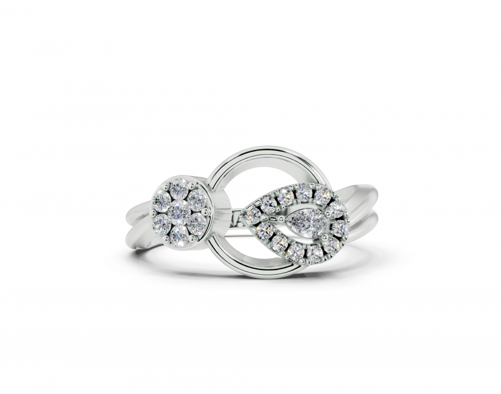 14K white gold ring with 0.05ct Pear Cut diamonds and 0.19ct round diamonds. Ring weight is approximately 3.00 grams. The ring can also be made to order in 18K gold. We can modify the design according to your budget.