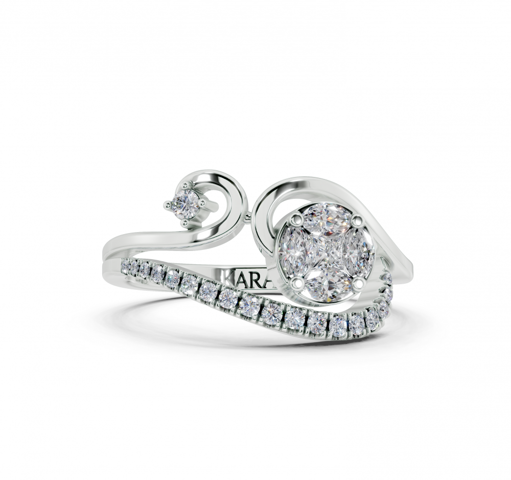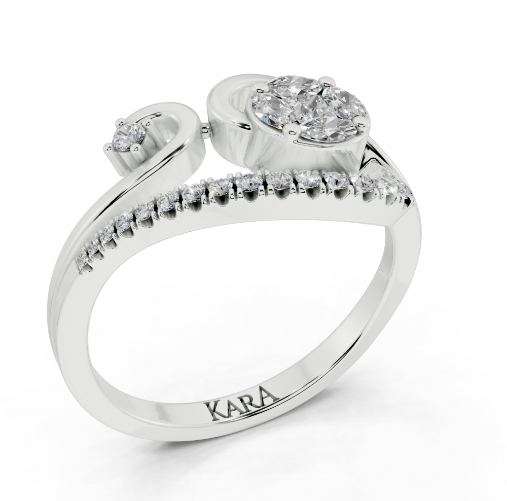 14K white gold ring with 0.06 ct Princess Cut diamonds, 0.13 ct Marquise Cut diamonds and 0.11 ct round diamonds. Ring weight is approximately 3.5 grams.