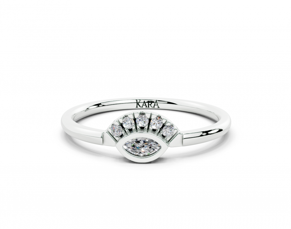 14K white gold ring with a 0.07ct Marquise Cut center diamond and 0.04ct round diamonds. Ring weight is 1.66 grams. We can modify the design according to your budget. We can choose the characteristics of the diamonds (cut, color, clarity, carat) to create the perfect diamond ring. Go to...