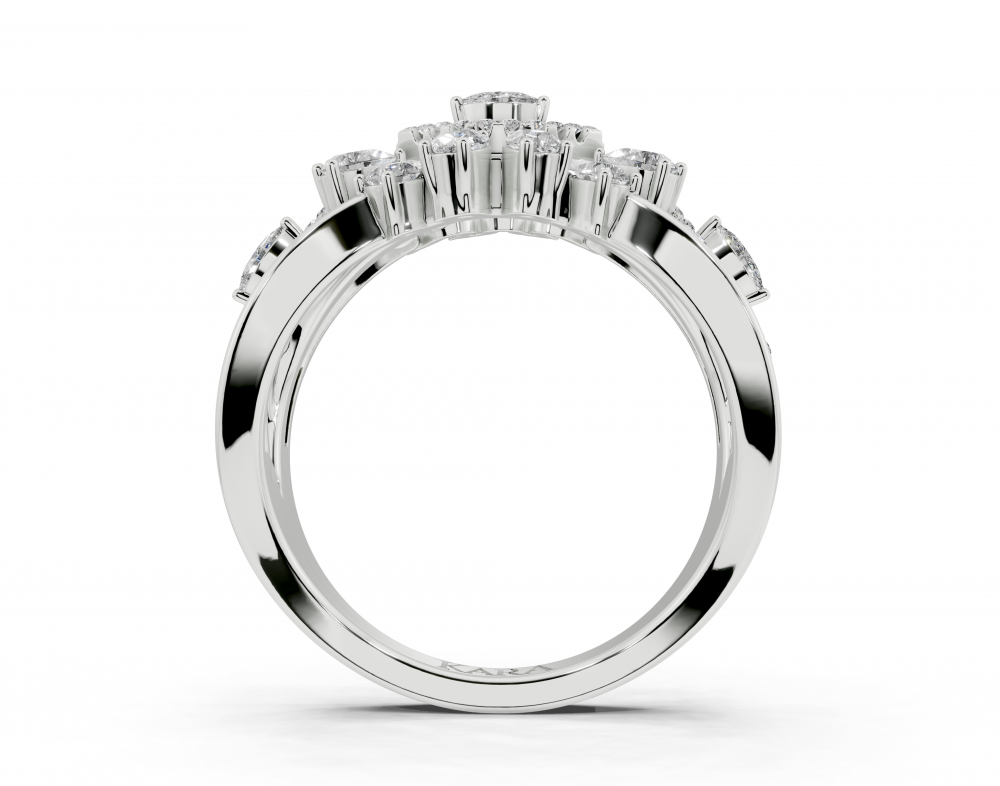 14K white gold ring with 0.62ct Pear Cut diamonds, 0.07ct Marquise Cut diamonds and 0.10ct round diamonds. Ring weight is approximately 4.50 grams. The ring can also be made to order in 18K gold. We can modify the design according to your budget.