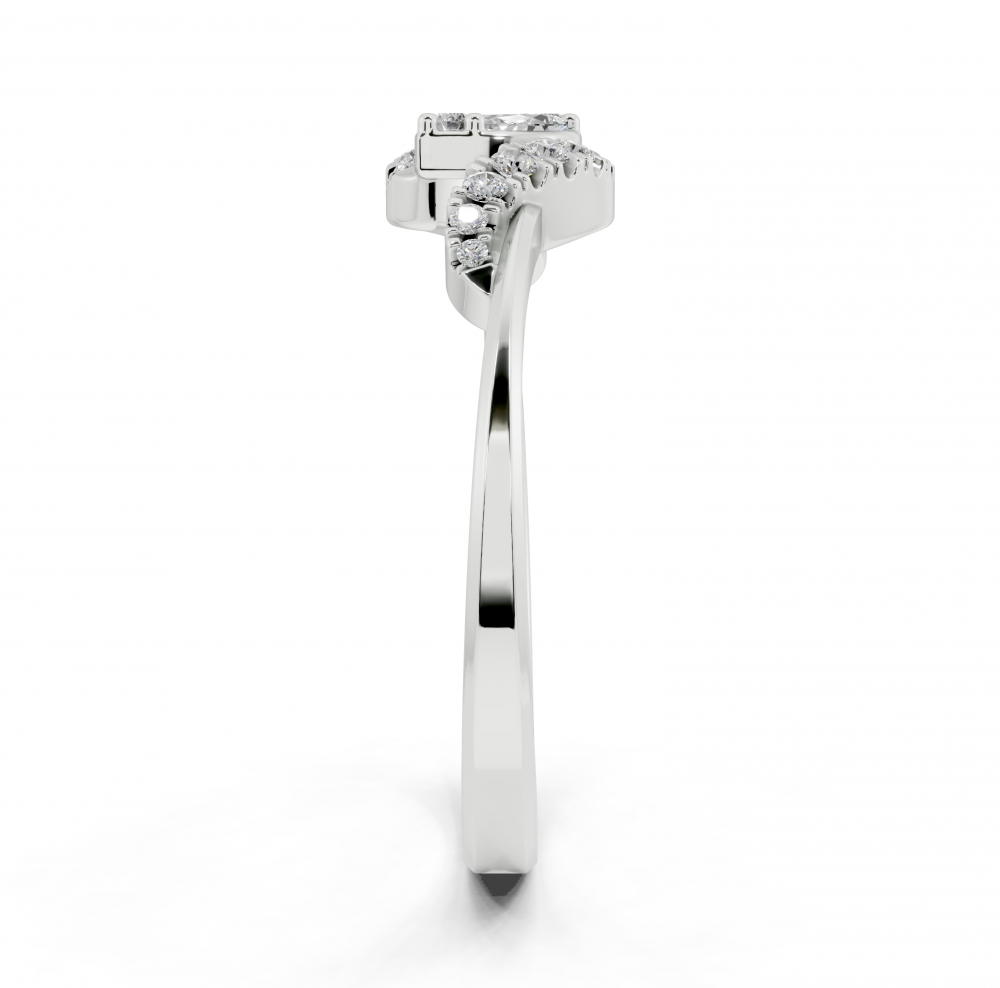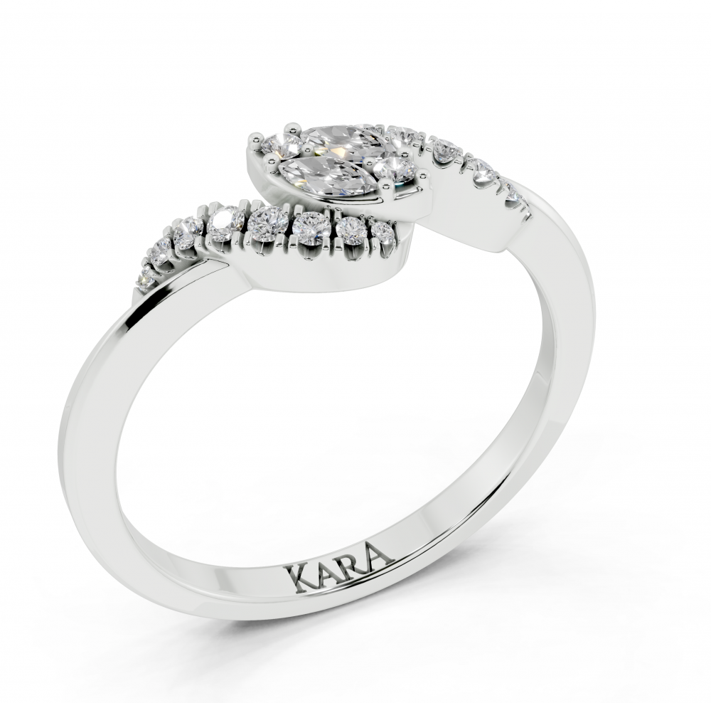 14K white gold ring with 0.07ct Marquise Cut diamonds and 0.10ct round diamonds. Ring weight is approximately 2 grams. The ring can also be made to order in 18K gold. We can modify the design according to your budget.