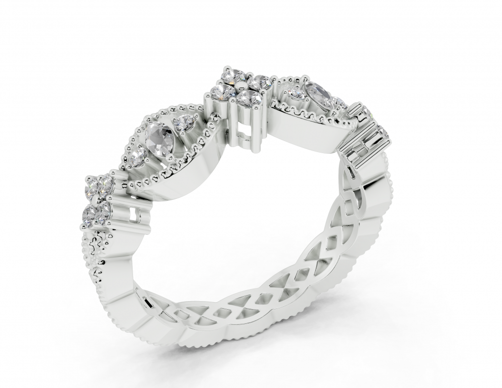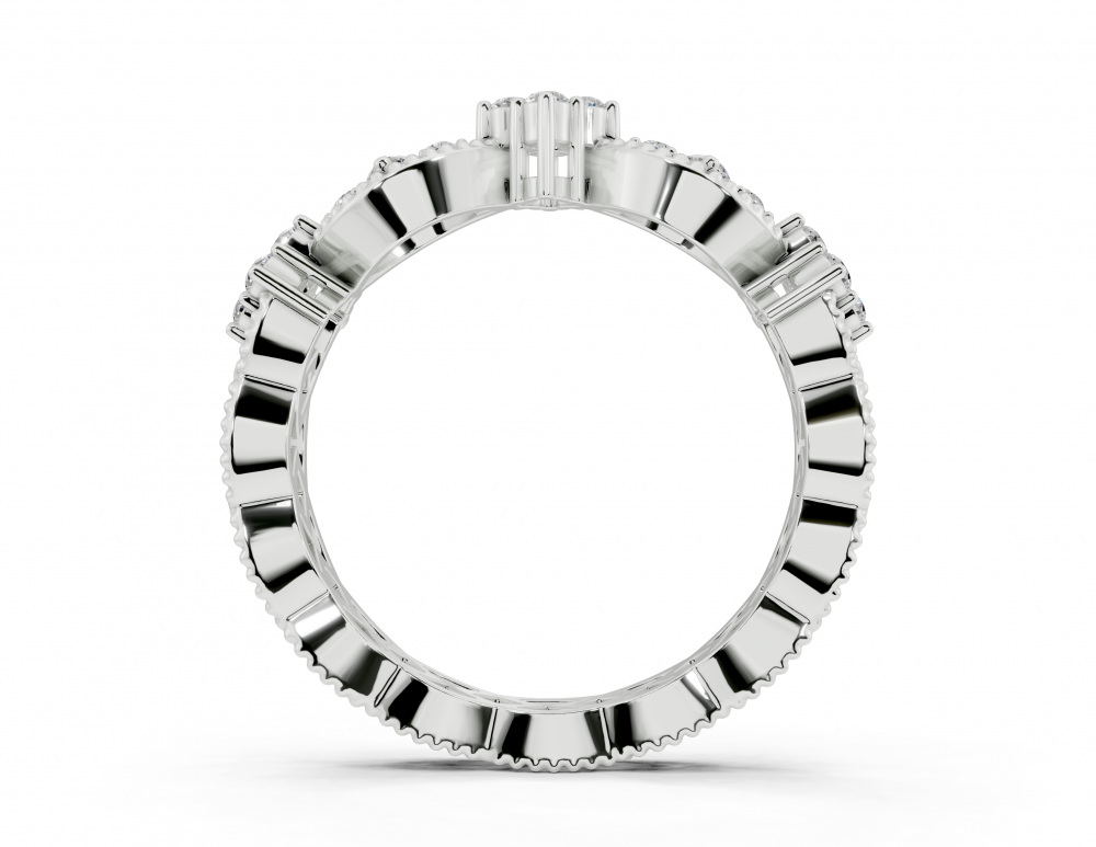 14K white gold ring with 0.07ct Marquise Cut diamonds and 0.20ct round diamonds. Ring weight is approximately 4 grams. The ring can also be made to order in 18K gold. We can modify the design according to your budget.