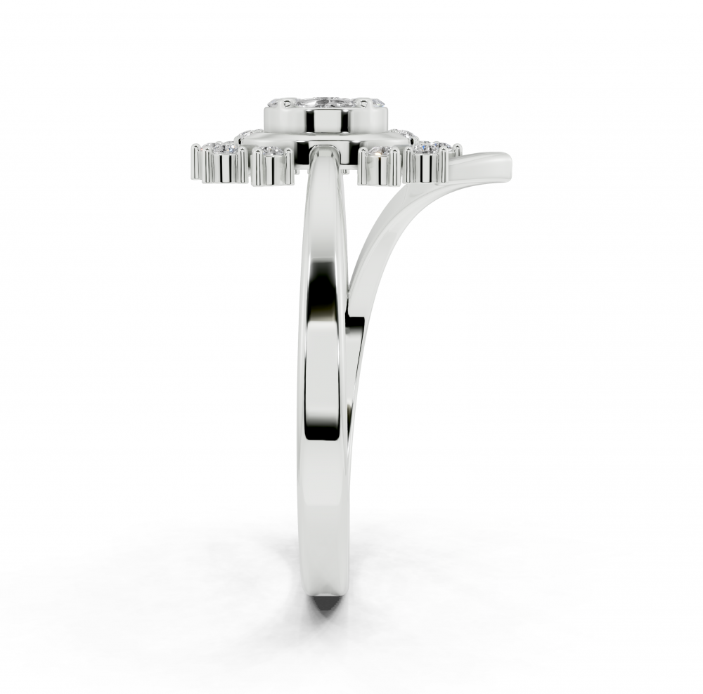 14K white gold ring with 0.10ct Marquise Cut diamonds, a 0.05ct Princess Cut diamond and 0.15ct round diamonds. The weight of the ring is approximately 3.50 grams.