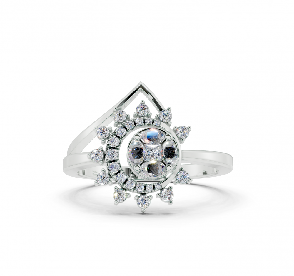 14K white gold ring with 0.10ct Marquise Cut diamonds, a 0.05ct Princess Cut diamond and 0.15ct round diamonds. The weight of the ring is approximately 3.50 grams. The ring can also be made to order in 18K gold. We can modify the design according to your budget.