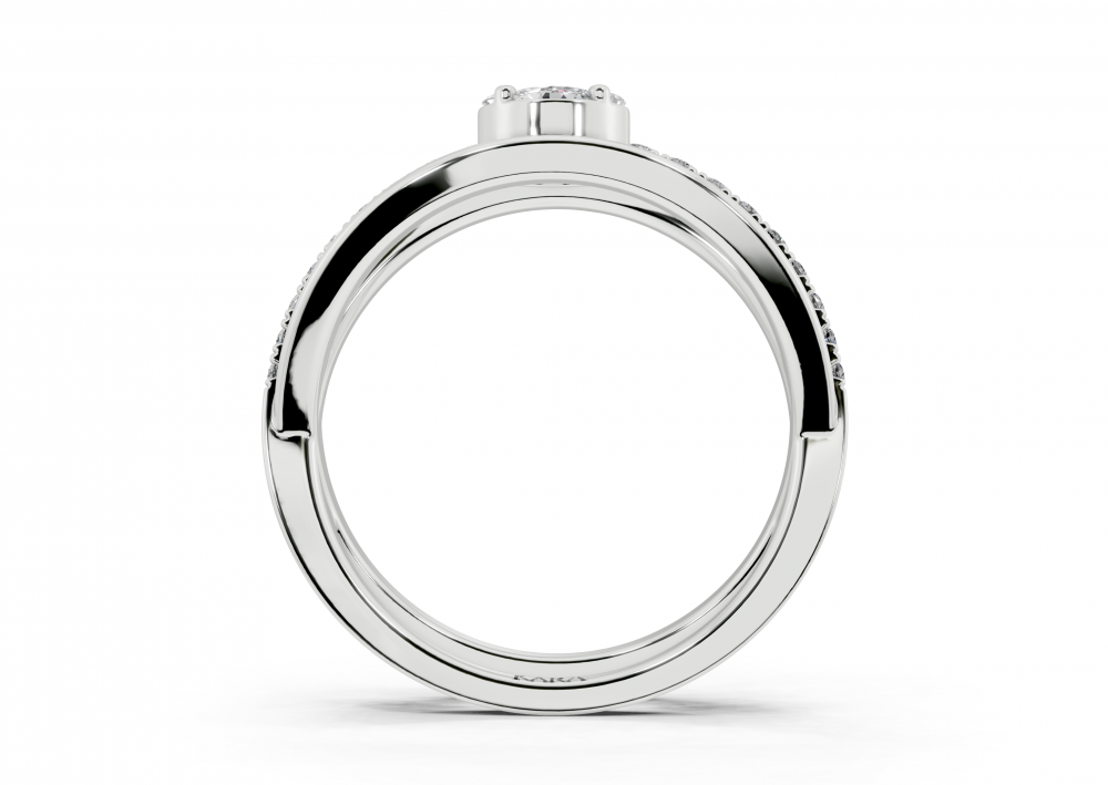 14K white gold ring with 0.10ct Marquise Cut diamonds, a 0.05ct Princess Cut diamond and 0.21ct round diamonds. The weight of the ring is approximately 4.00 grams. The ring can also be made to order in 18K gold. We can modify the design according to your budget.