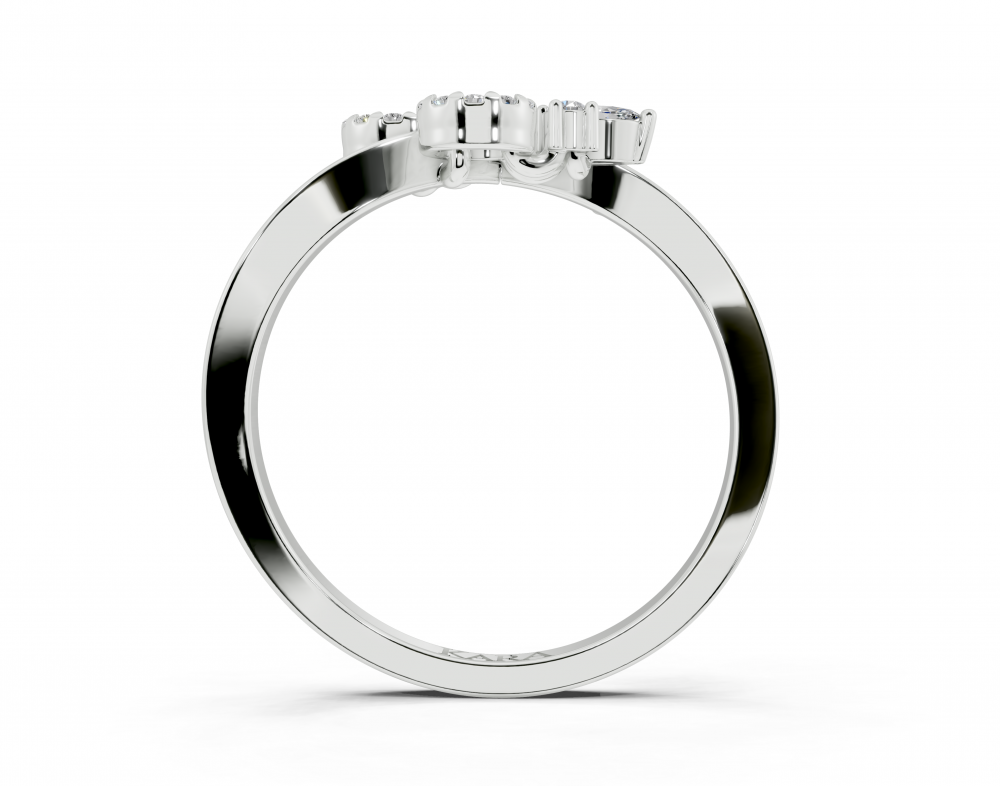 Ring in 14K white gold, with 0.11 ct Marquise Cut diamonds and 0.17 ct round diamonds. The weight of the ring is approximately 1.50 grams.