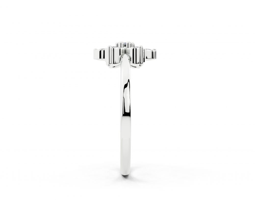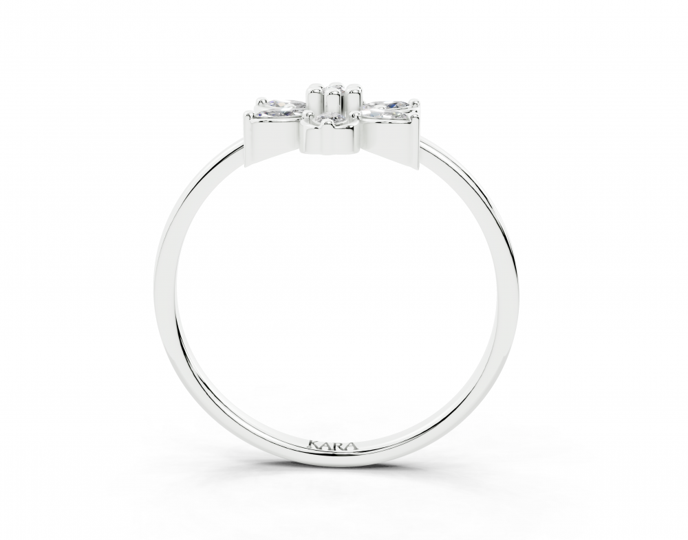 14K white gold ring with 0.13ct Marquise Cut diamonds and a 0.01ct round diamond. The weight of the ring is 2.23 grams.