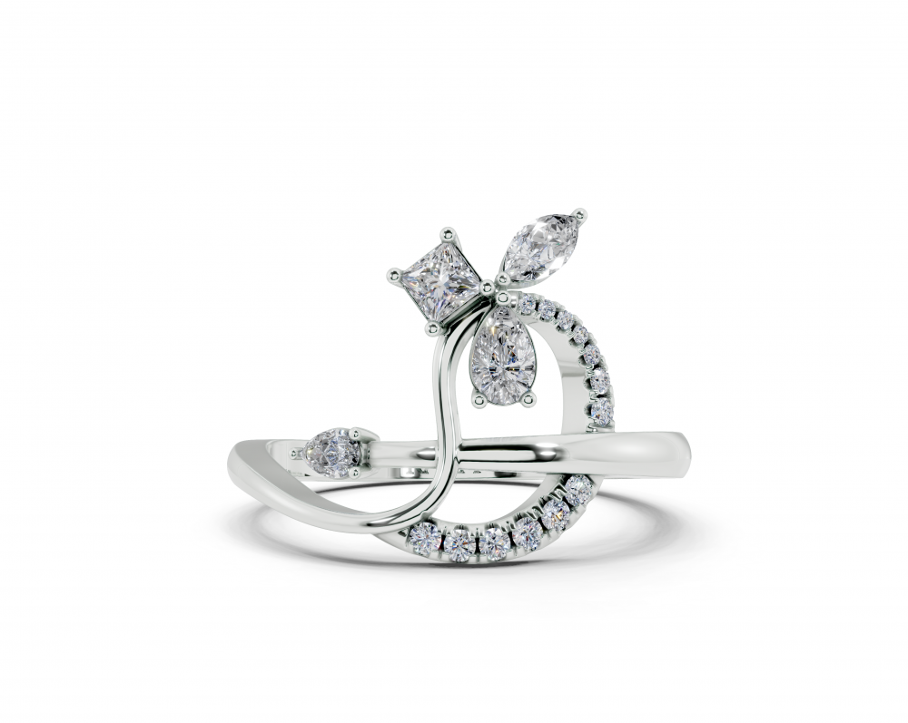 14K white gold ring with Pear cut diamonds of 0.14 ct, Marquise Cut diamonds of 0.06 ct, Princess Cut diamonds of 0.12 ct and round diamonds of 0.06 ct. Ring weight is approximately 3.00 grams. Go to "Specifications" for more details about this product.