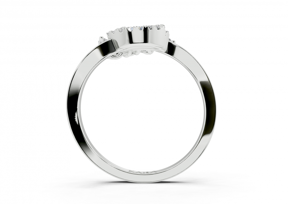 14K white gold ring with 0.15 ct Marquise Cut diamonds and 0.09 ct round diamonds. The weight of the ring is approximately 2.50 grams. The ring can also be made to order in 18K gold. We can modify the design according to your budget.