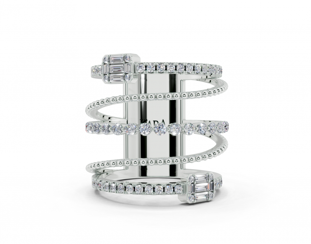 14K white gold ring with 0.15ct baget diamonds and 0.46ct round diamonds. Ring weight is approximately 7.00 grams. The ring can also be made to order in 18K gold. We can modify the design according to your budget.