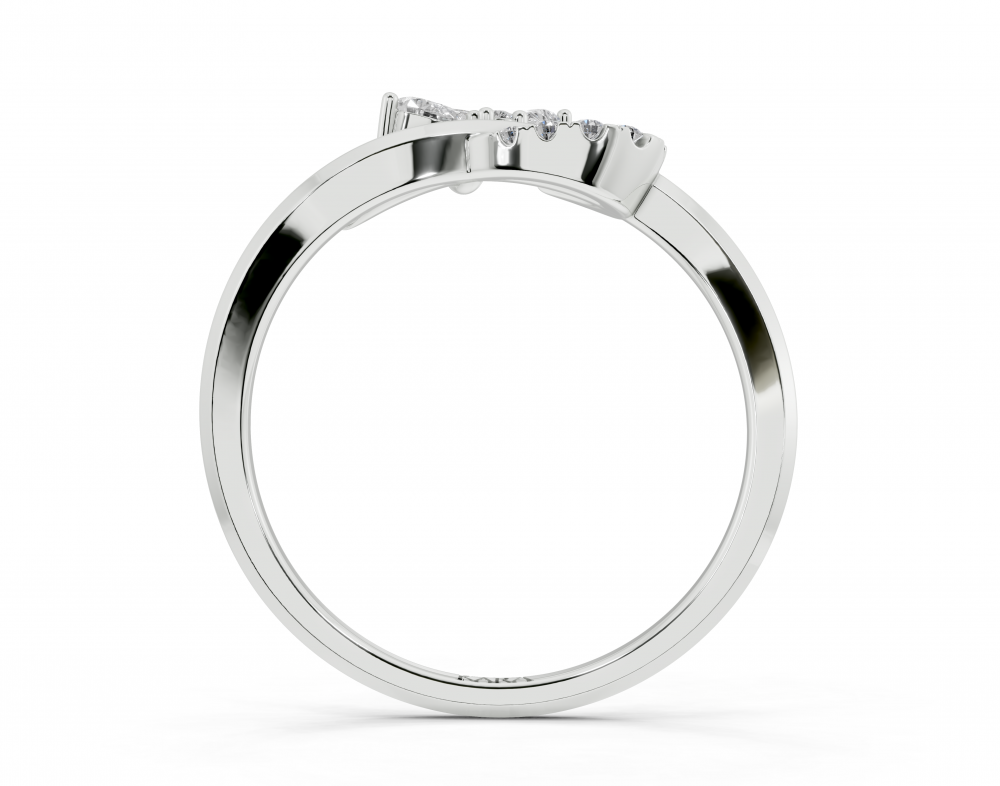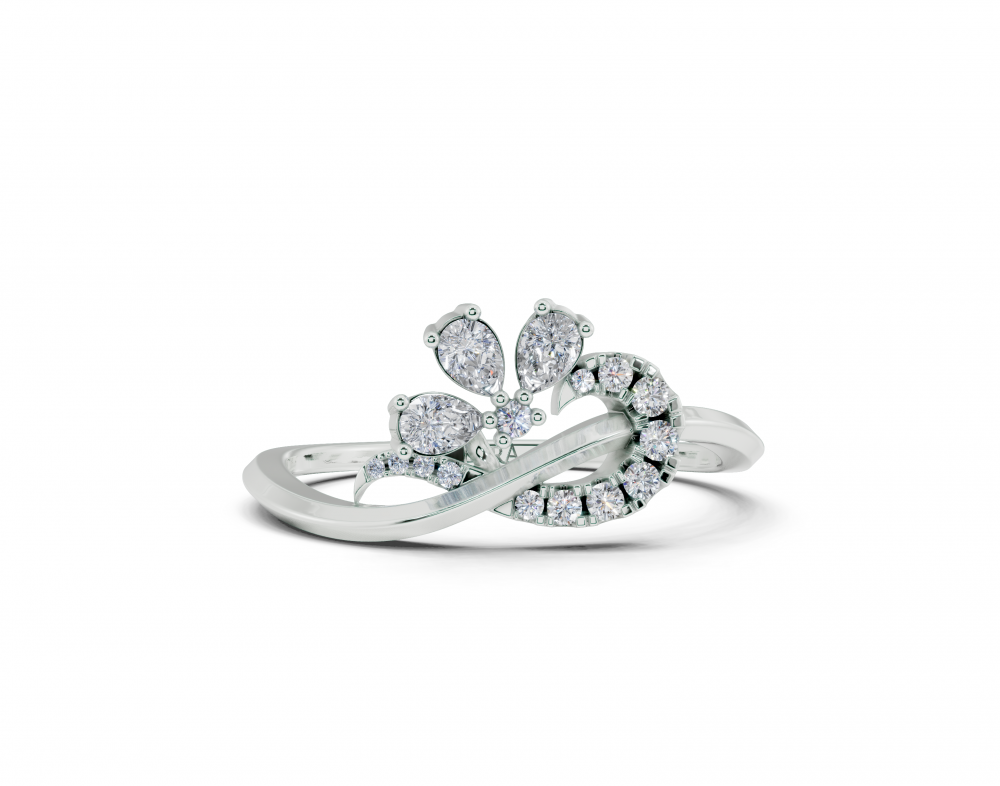 14K white gold ring with 0.16ct Pear Cut diamonds and 0.07ct round diamonds. Ring weight is approximately 1.50 grams. The ring can also be made to order in 18K gold. We can modify the design according to your budget.