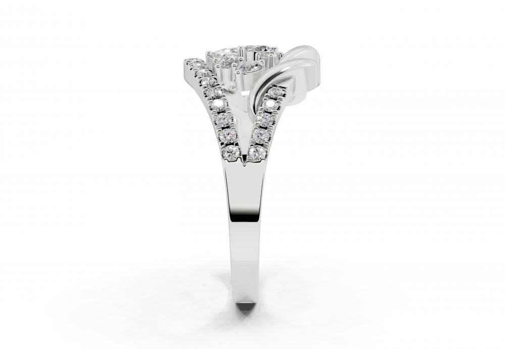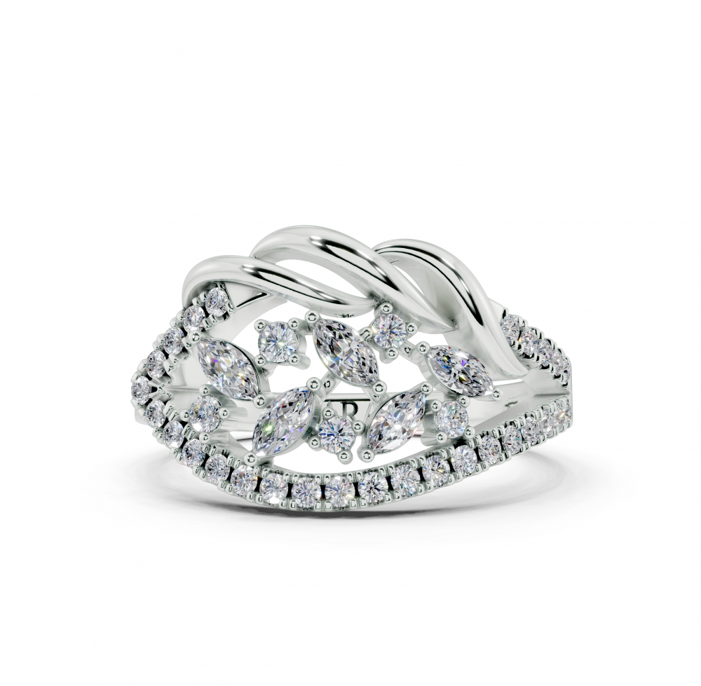 14K white gold ring with 0.17ct Marquise Cut diamonds and 0.24ct round diamonds. Ring weight is approximately 3.50 grams. The ring can also be made to order in 18K gold. We can modify the design according to your budget.