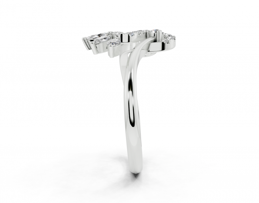 14K white gold ring with 0.19 ct Marquise Cut diamonds and 0.20 ct round diamonds. The weight of the ring is approximately 3.30 grams.