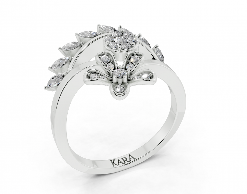 14K white gold ring with 0.19ct Marquise Cut diamonds and 0.18ct round diamonds. Ring weight is approximately 3.00 grams. The ring can also be made to order in 18K gold. We can modify the design according to your budget.